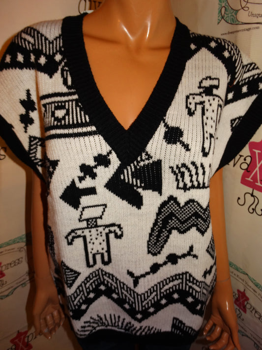 Vintage Organically Grown Black/White Sweater Top Size XL