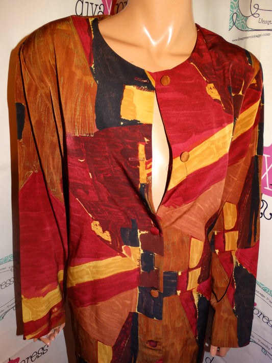 Vintage Marilyn B Burgundy Tan Blouse Size 2x