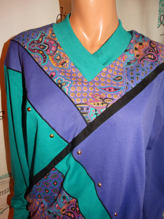 Vintage YS Sport Green Colorful Blouse Size M