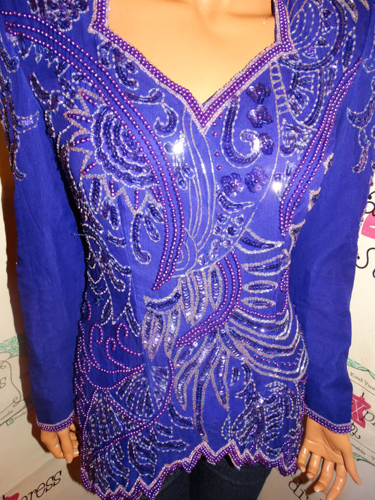 Vintage Lawerence Kazer Purple Sequins Blouse Size S
