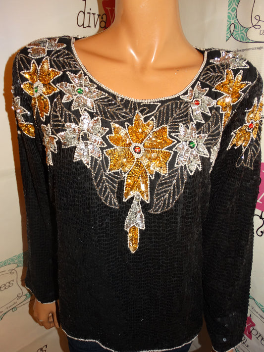 Vintage Joseph Le Bon Black/Gold Sequins Blouse Size L
