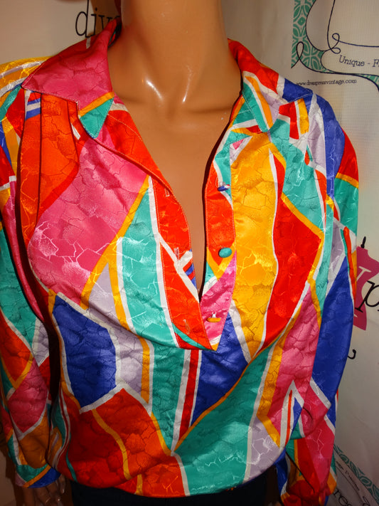 Vintage Karen Kane Yellow Colorful Blouse Size L