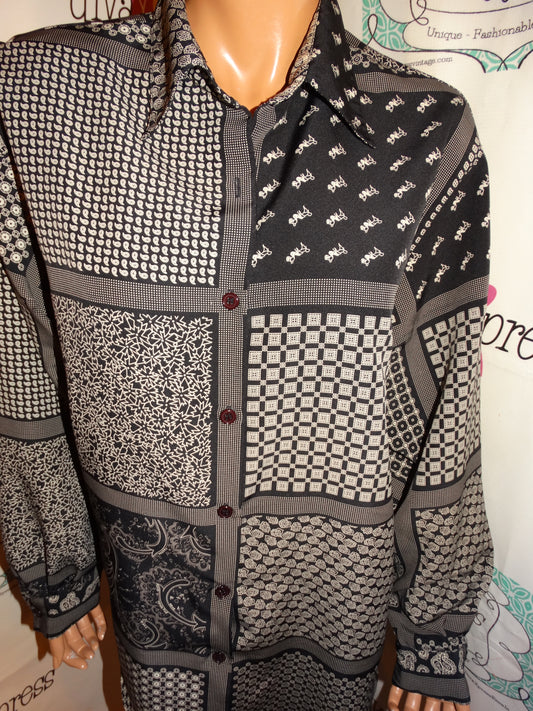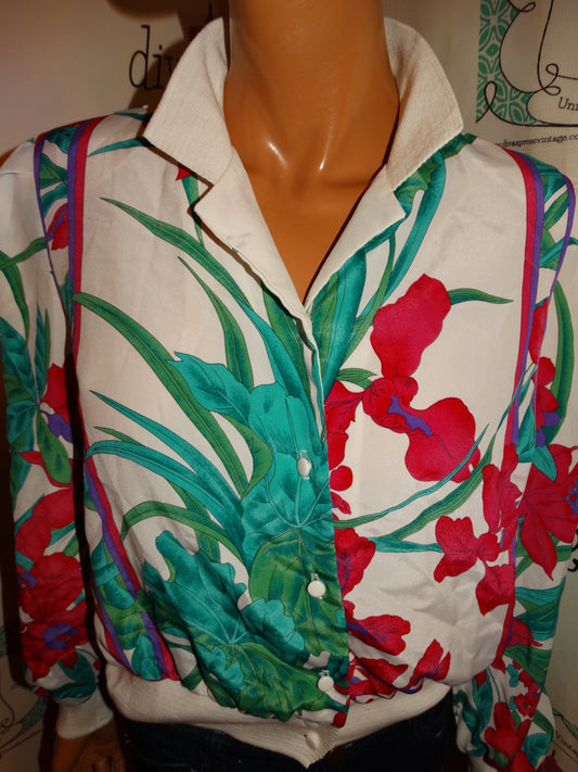 Vintage Tropics Black/Tan Colorful Blouse Size L