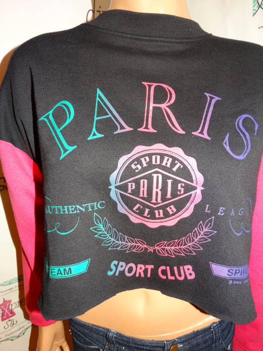 Vintage Paris Sport Club Pink Crop Top Sweat Shirt Size L