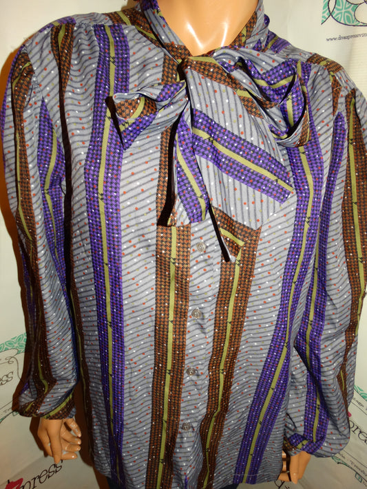 Vintage Rhonda Lee Gray/Purple Tie Bow Blouse Size 1x
