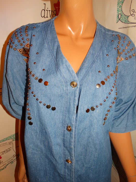 Vintage Super Line Blue Jean Beaded Top Size 1x