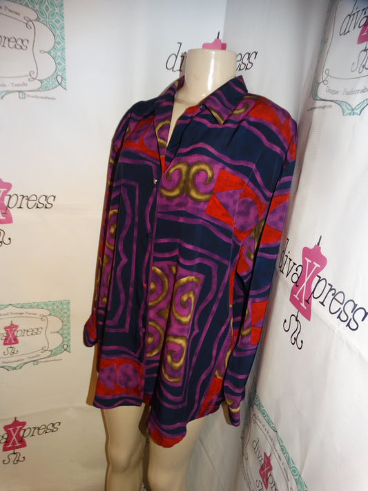 Vintage Stunt Collection Black Purple Blouse Size 1x