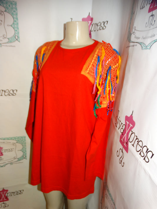 Vintage Red Gold Detail Shoulder Detail Sweater Top Size L