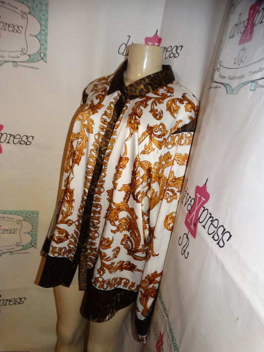 Vintage WDNY Cream/Gold Chain Blouse Size 1x