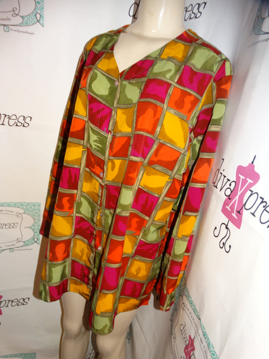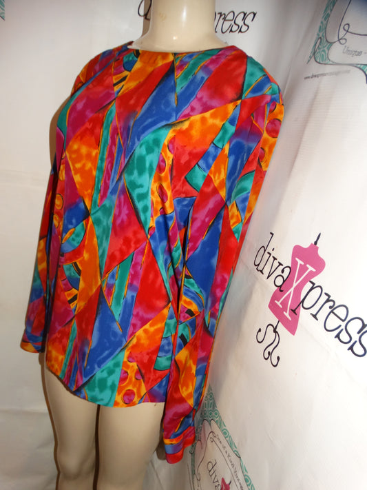 Vintage Le Caviar Black Colorful Blouse Size XL