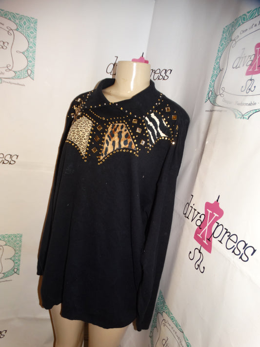Vintage Judith Ann Plus Black/Gold Sequins Top Size 1x