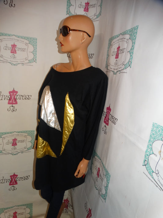 Vintage Kuka Black Siliver/Gold Detail Over Sized Top Size 1x