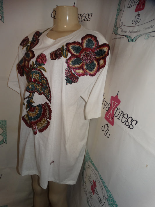 Vintage White Floral Custom Painted T Shirt Size 1x