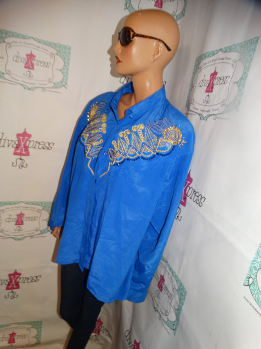 Vintage Maggie Barnes Blue/Gold Blouse Size 2x
