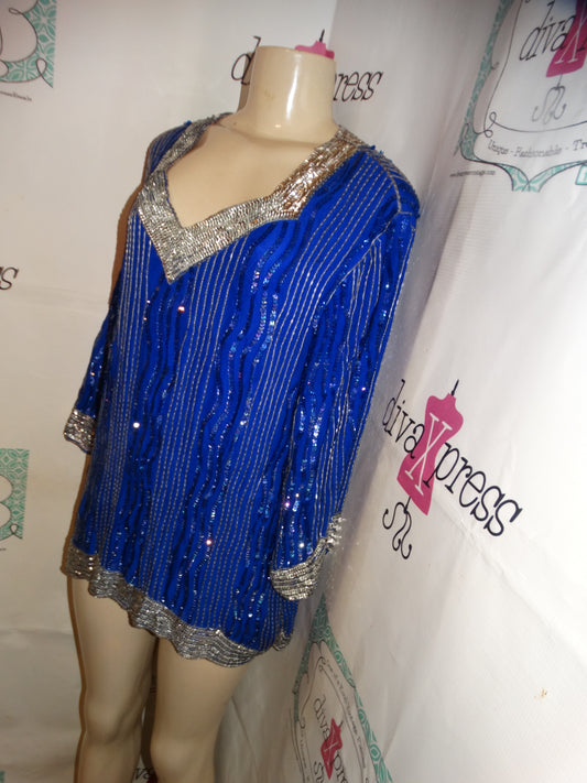 Vintage Royal Blue Silver Sequins Top Size L