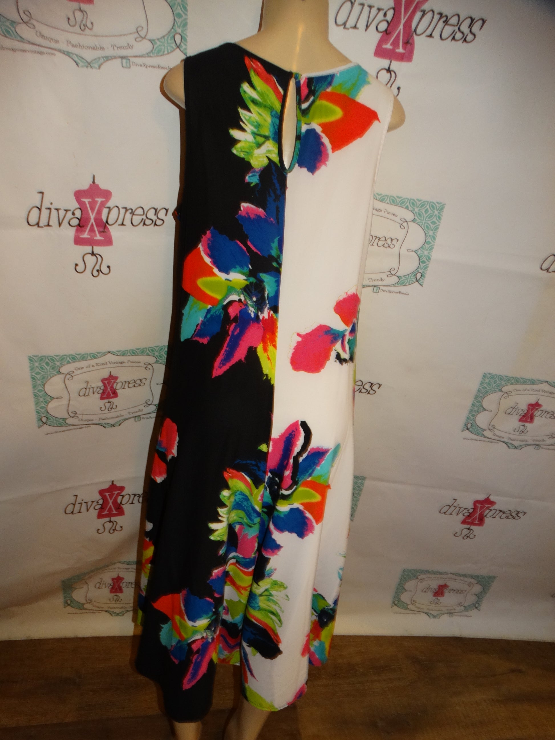 Up for sale is this lovely Jordan Vass White/Black Colorful Dress Size XL