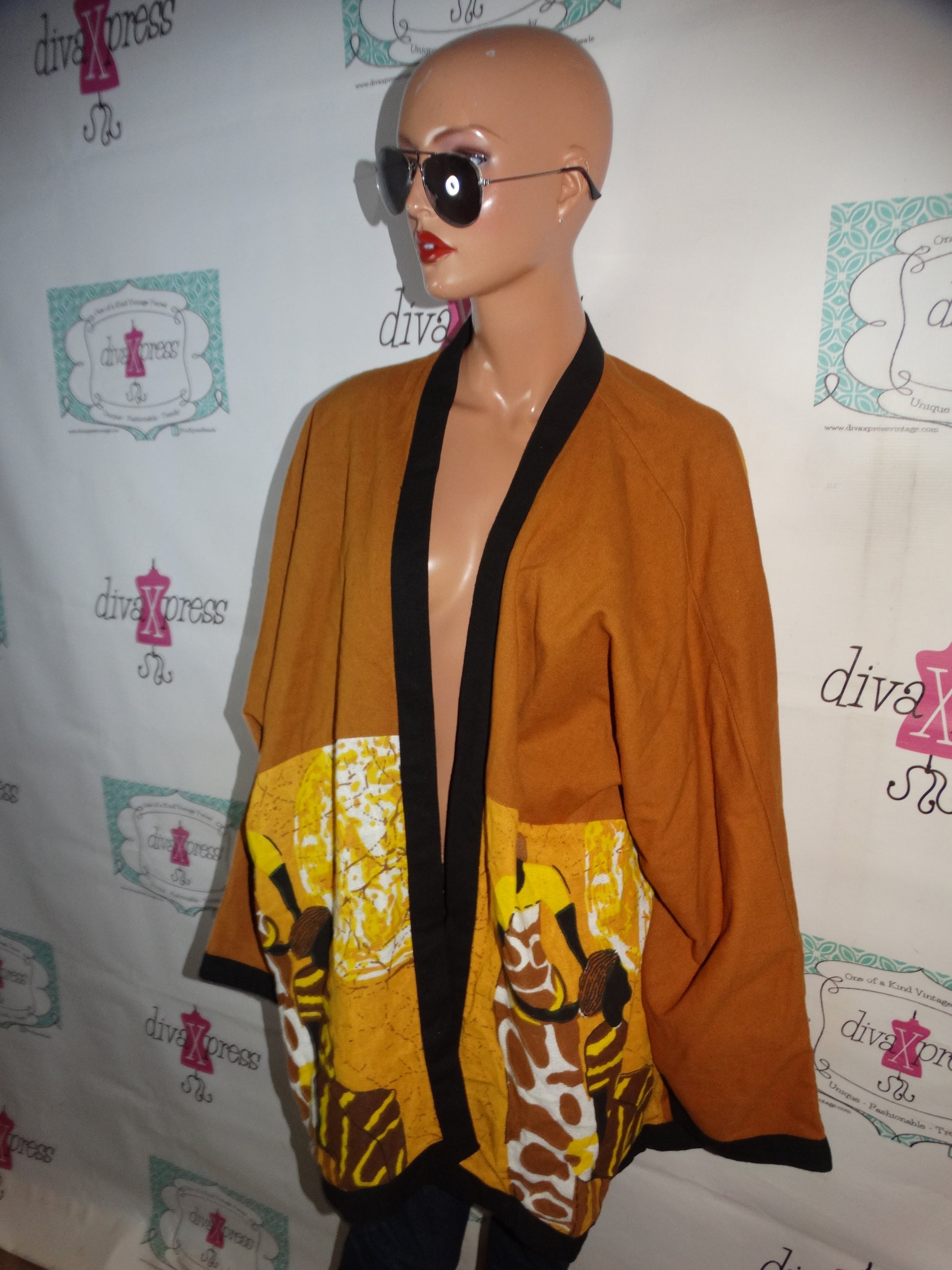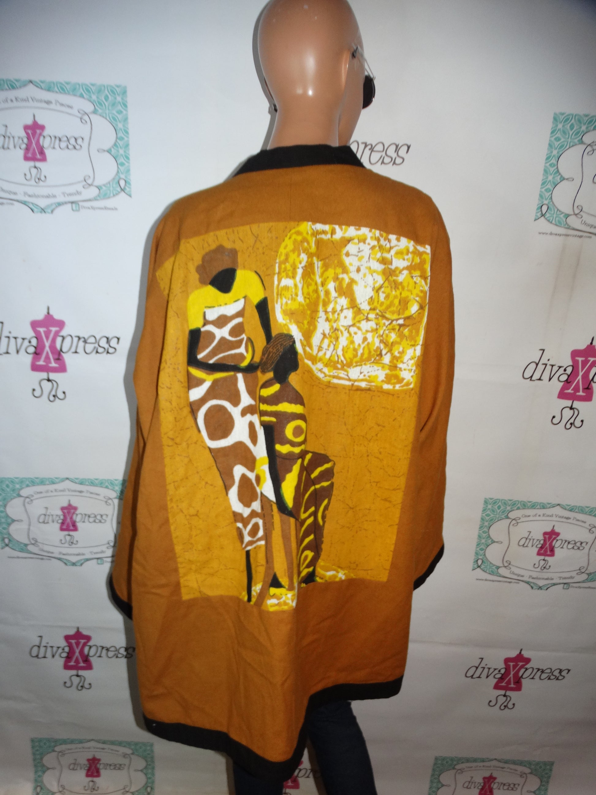 Up for sale is this lovely Vintage Astro Brown Print Throw Coat Size 3x
