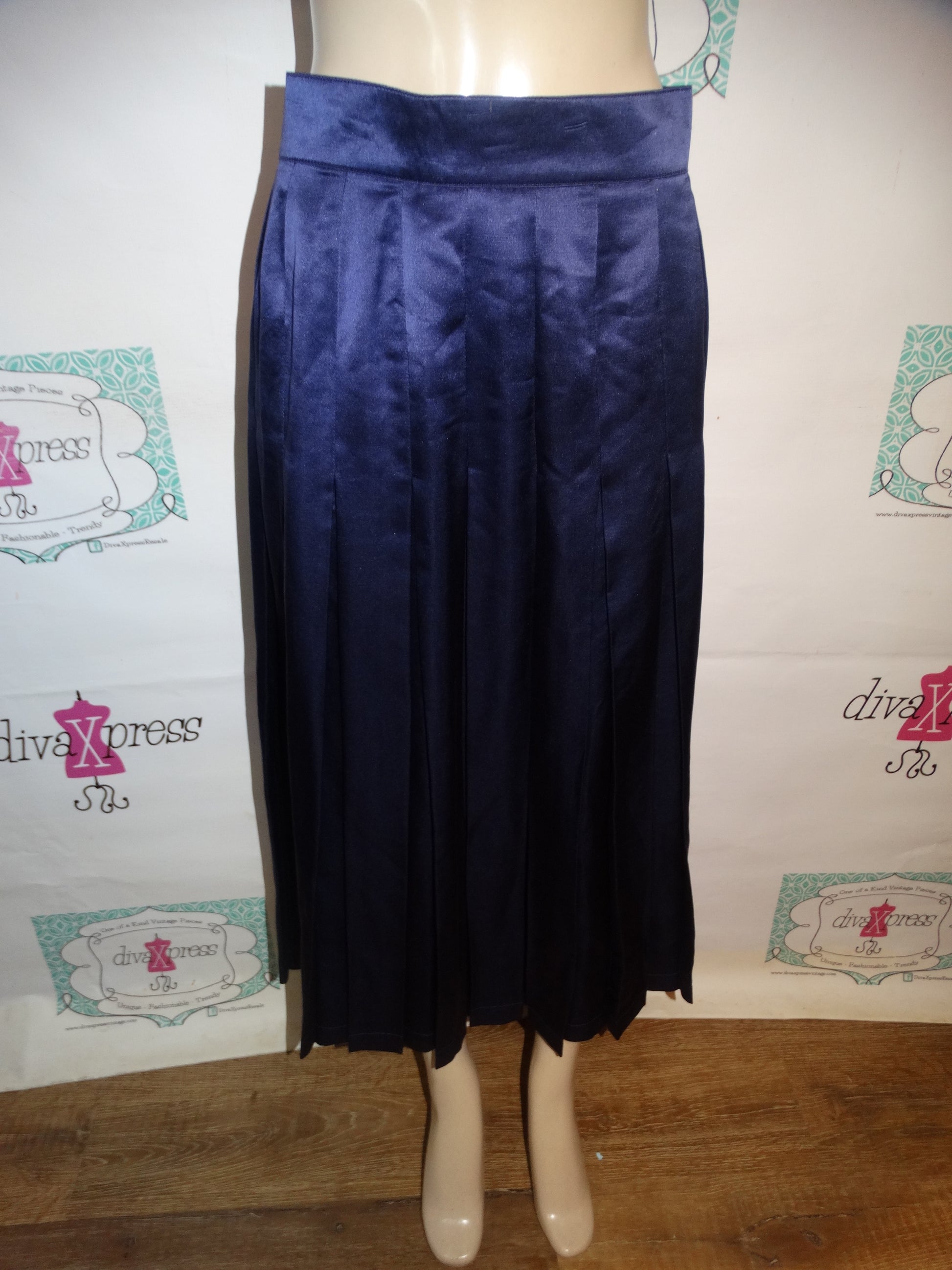 Vintage Authentic Escada Navy Blue PleATED SKIRT Size M