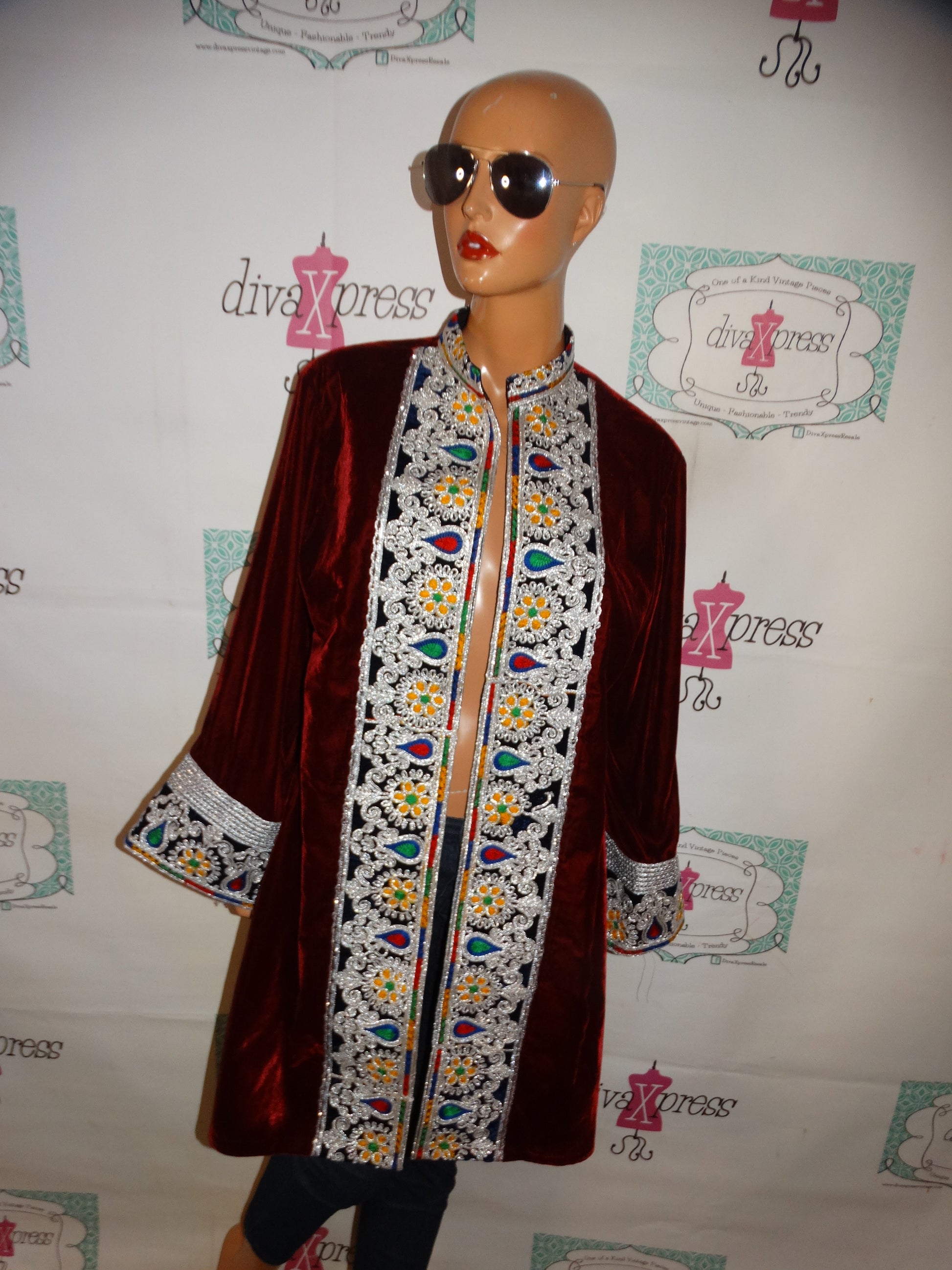 Up for sale is this lovely Vintage Burgundy/Silver Heavy Detail Throw Size L-XL