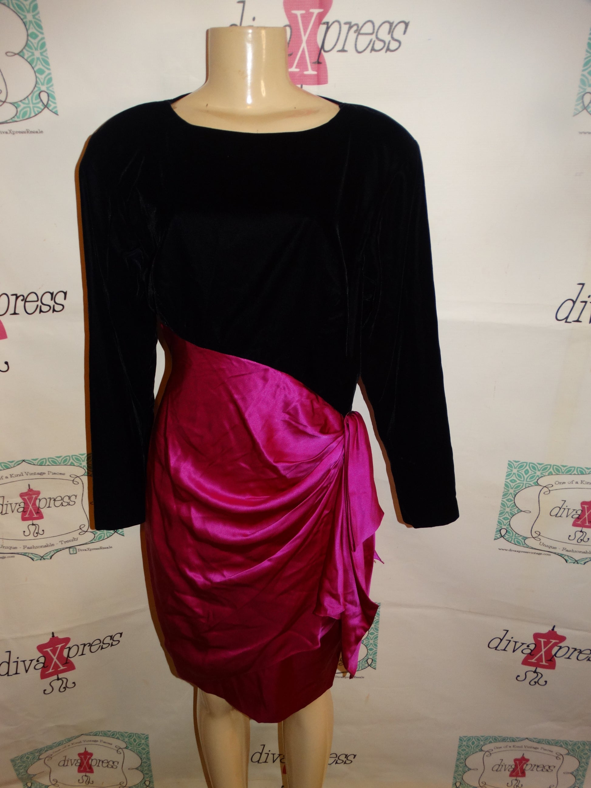 Up for sale is this lovely Vintage Gillian Black/Pink Draped Dress Size M