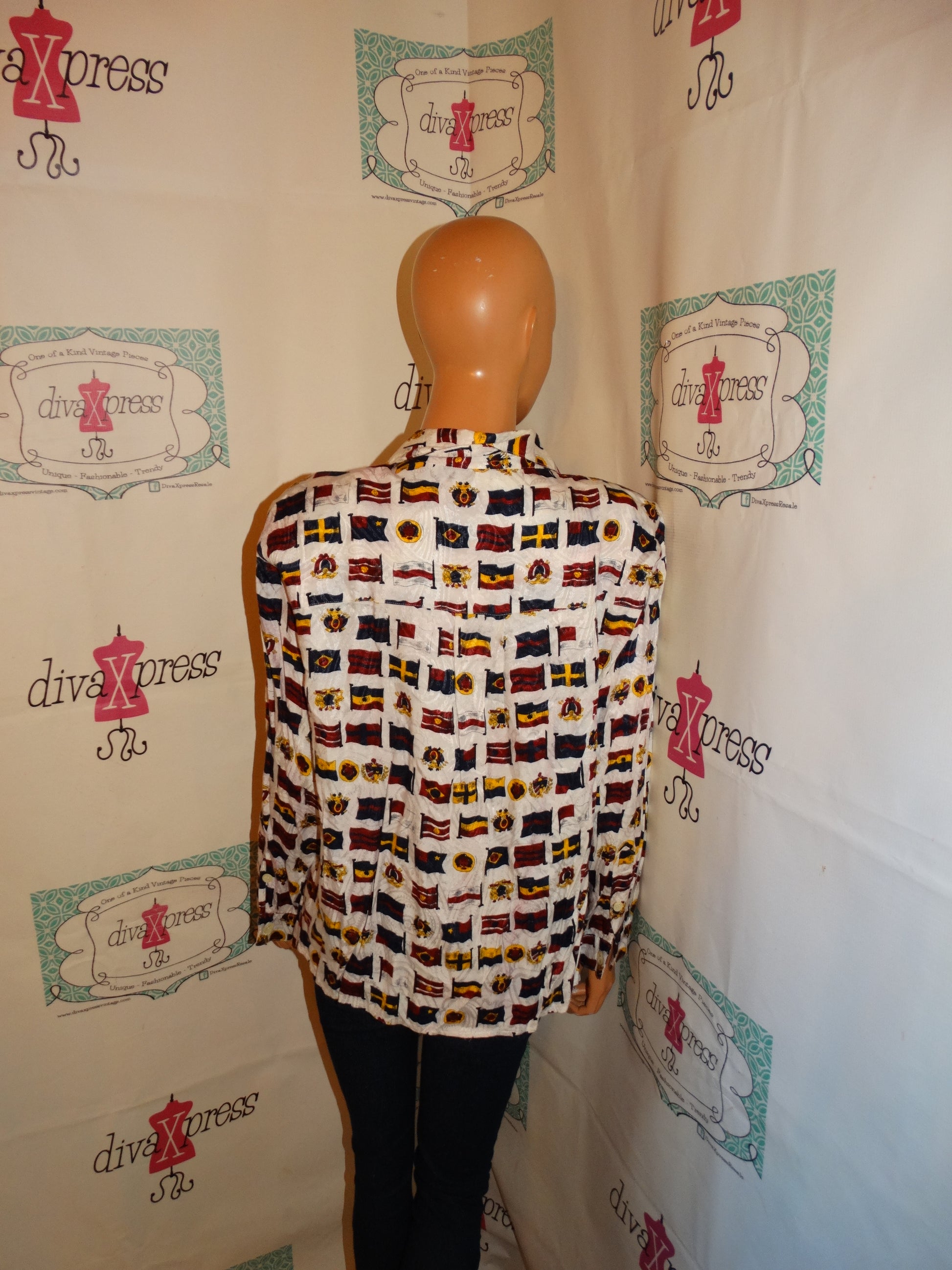 Up for sale is this lovely Vintage J.G. Cream Flag Blouse Size M