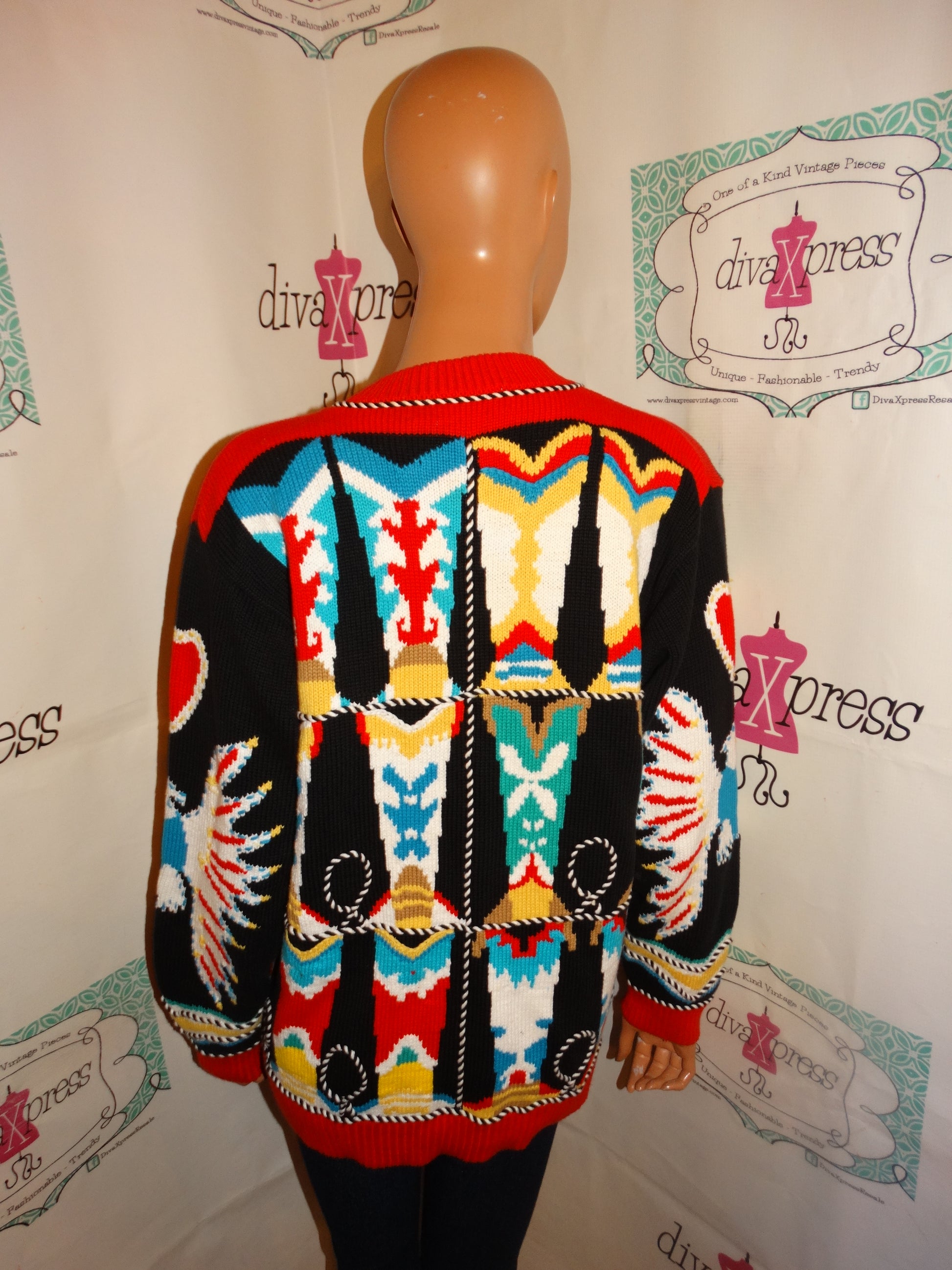 Up for sale is this lovely Vintage Jack B Quick Black Yellow Cowboy Sweater Cardigan Size L