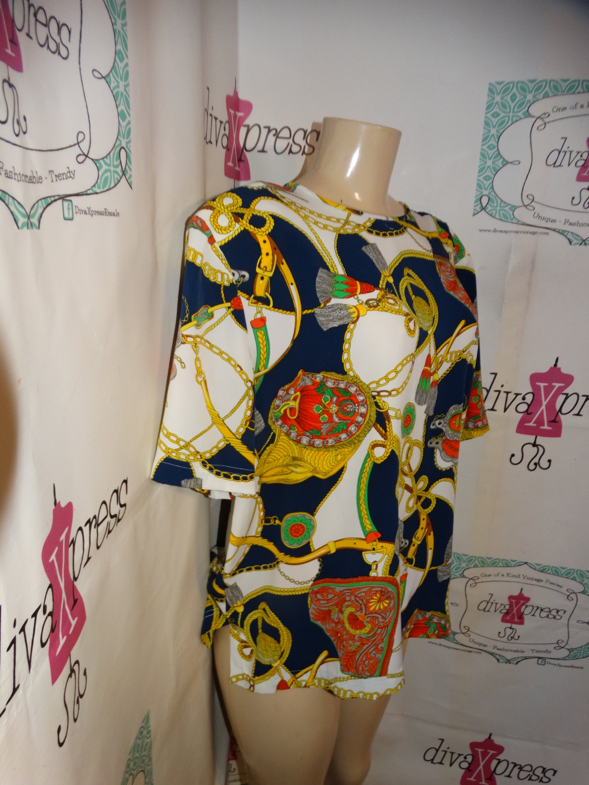 Up for sale is this lovely Vintage Jacqueline Lefter White Chain Blouse Size XL