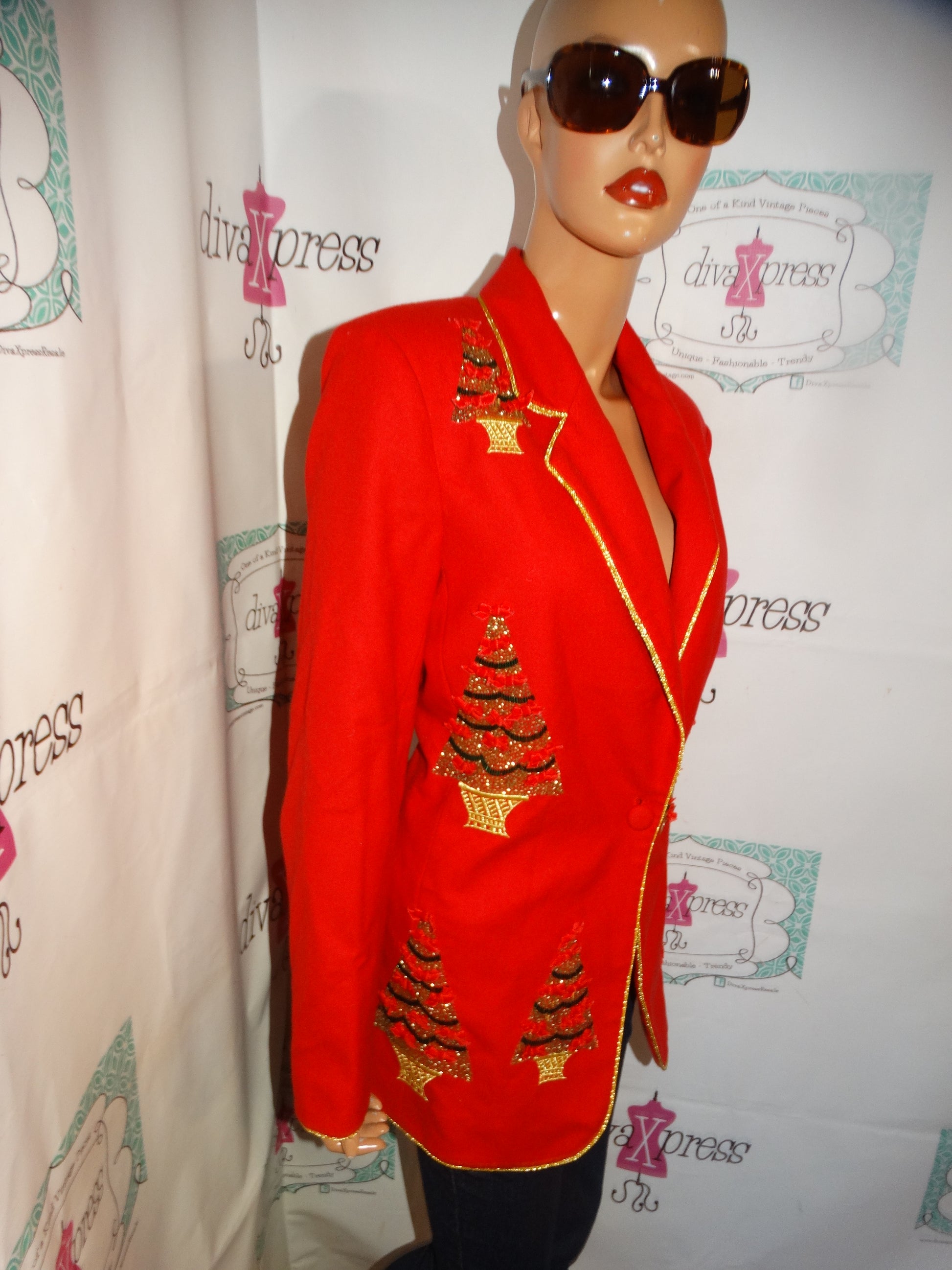 Vintage Jenna Red/Gold Christmas Detail Blazer Size L
