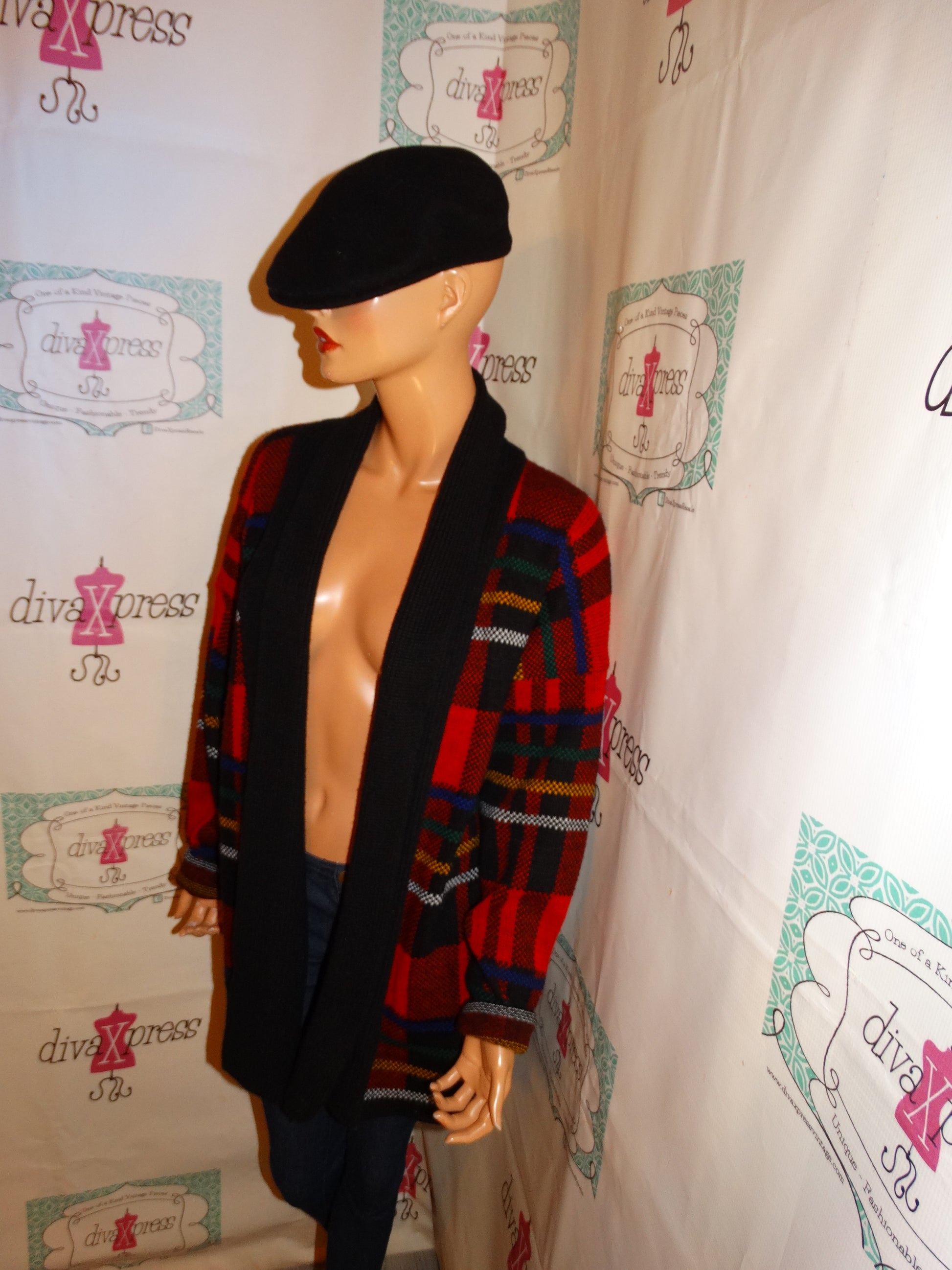 Vintage JJ Brown Red/Black Sweater Throw Size XL