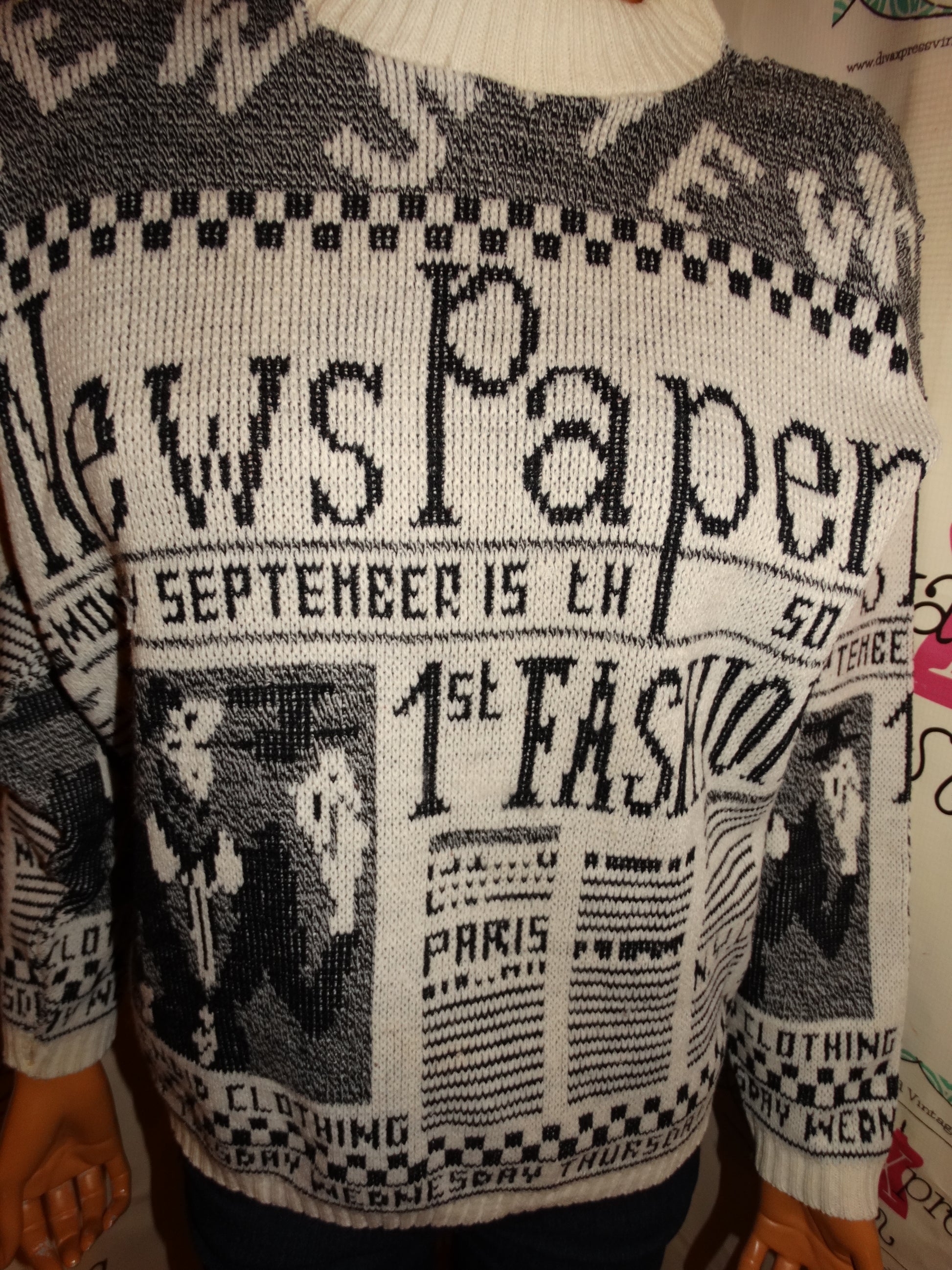 Up for sale is this lovely Vintage La Vista Black/White Newspaper Sweater Size L