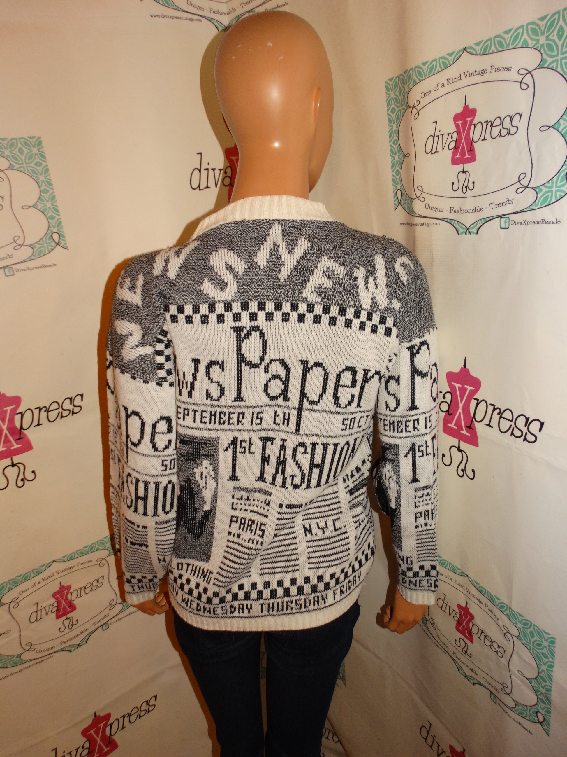 Vintage La Vista Black/White Newspaper Sweater Size L