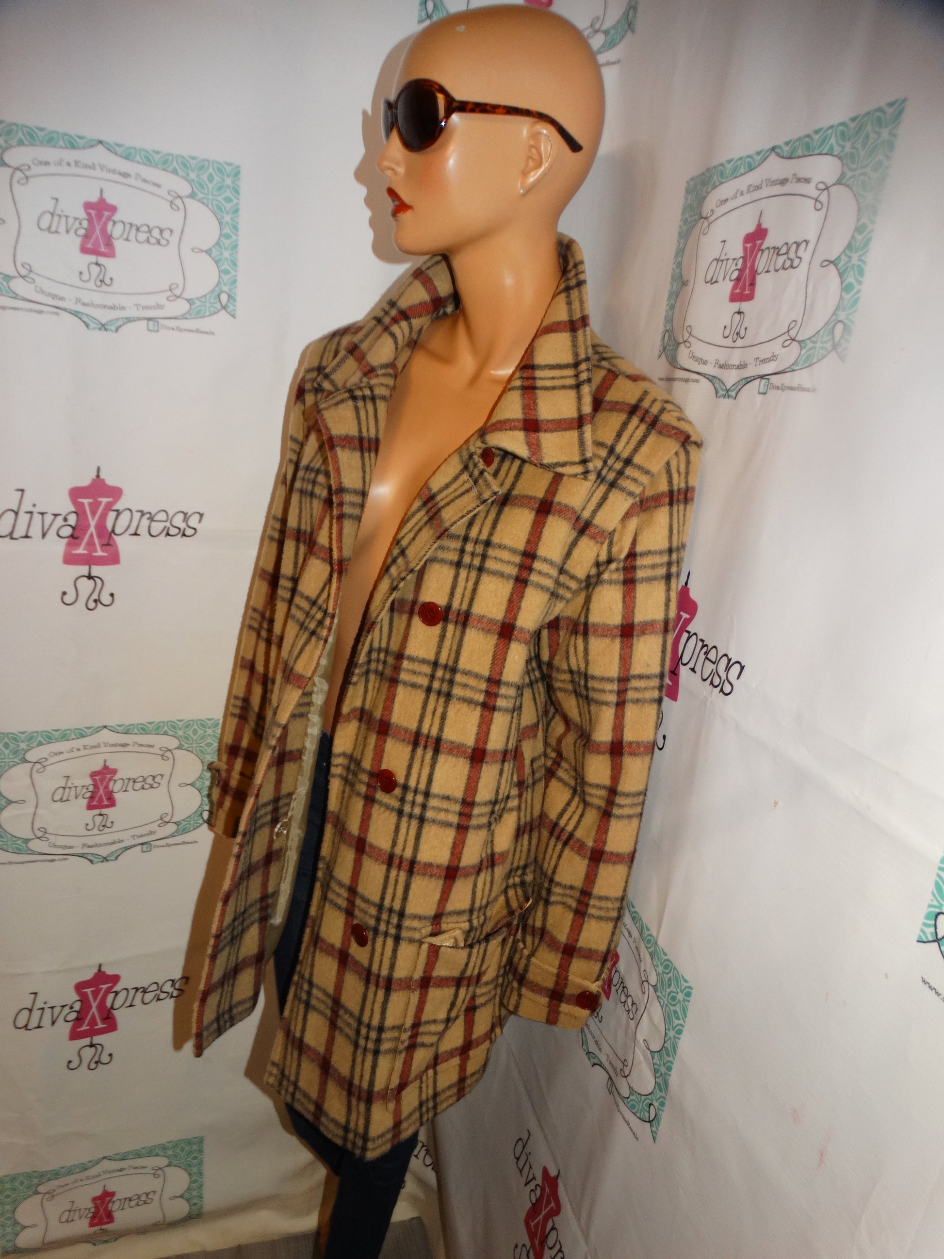 Up for sale is this lovely Vintage Lauren Sara Tan/ Burgundy Black wool Coat Size XL