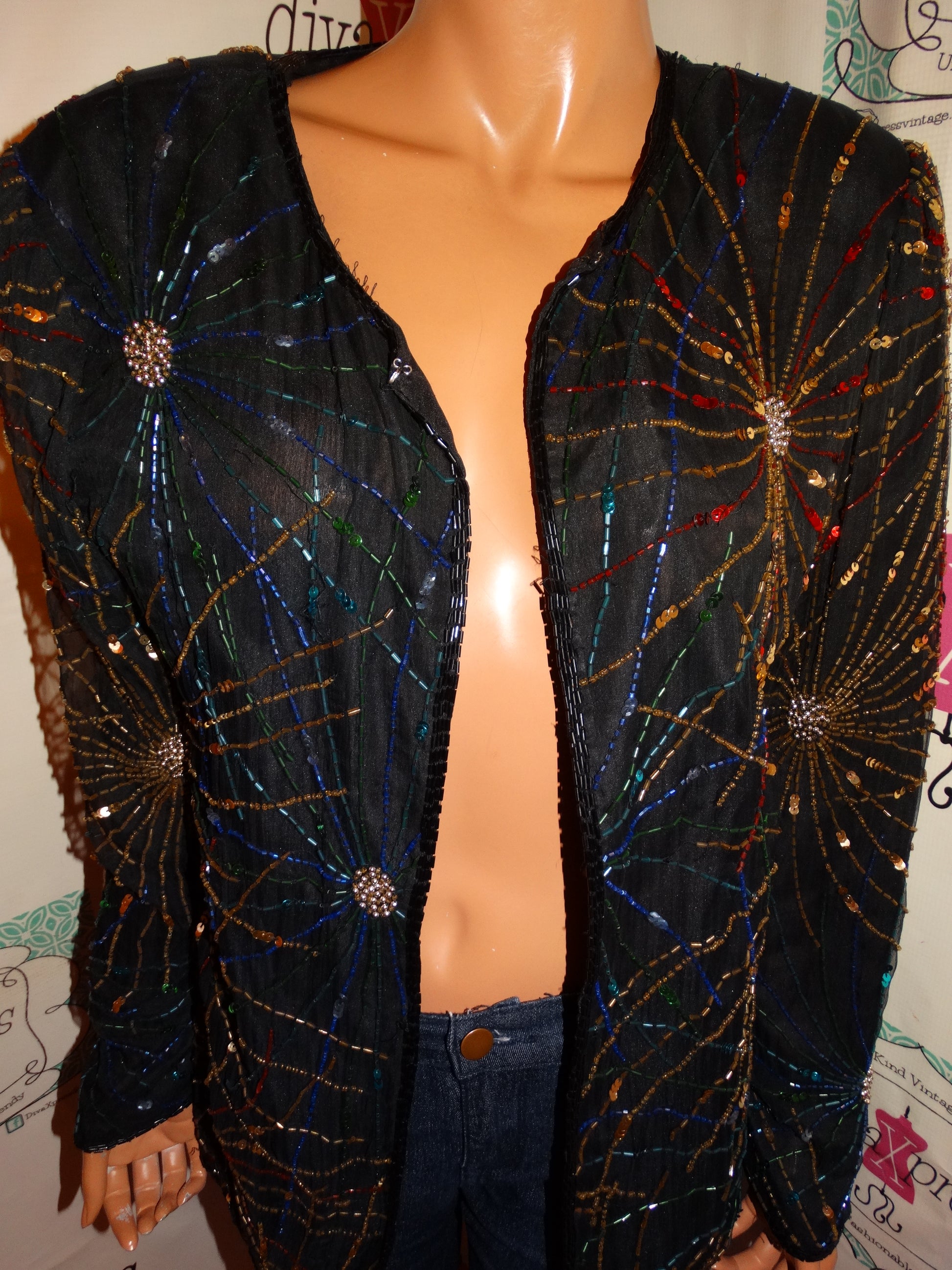 Up for sale is this lovely Vintage Lawerence Kazer Black Sequins Throw Size L