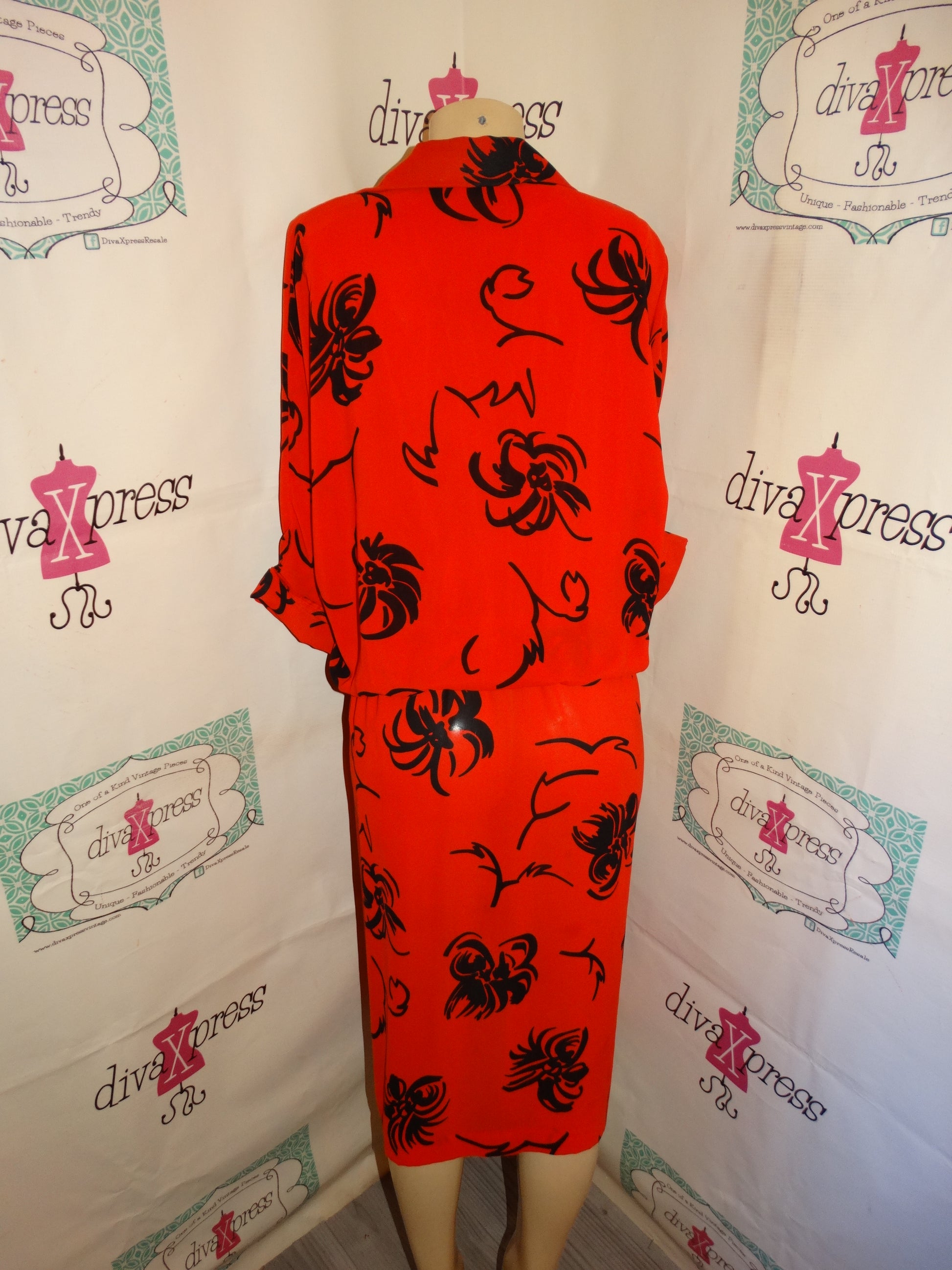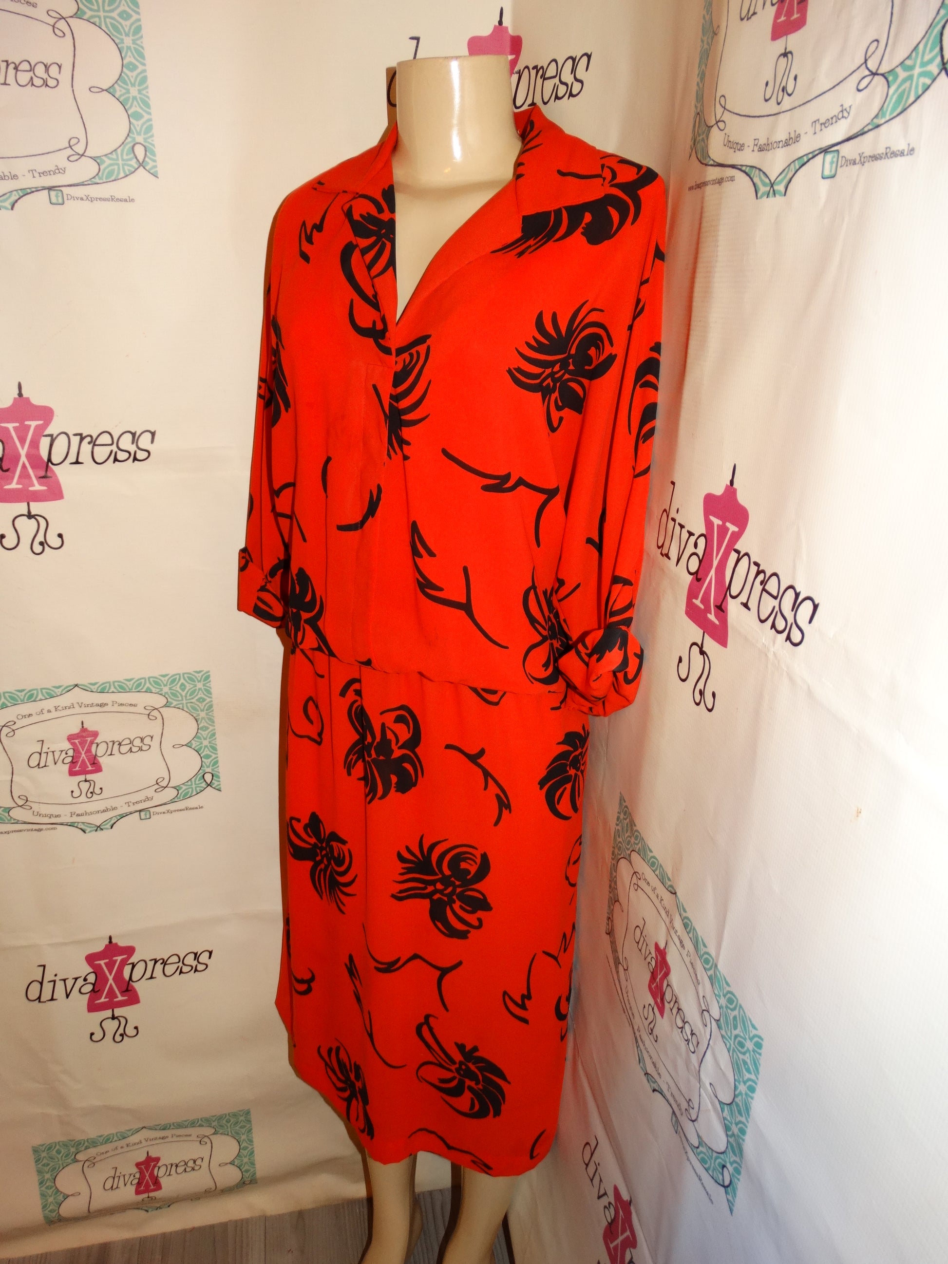 Up for sale is this lovely Vintage Liz Roberts Red/Black Dress Size L