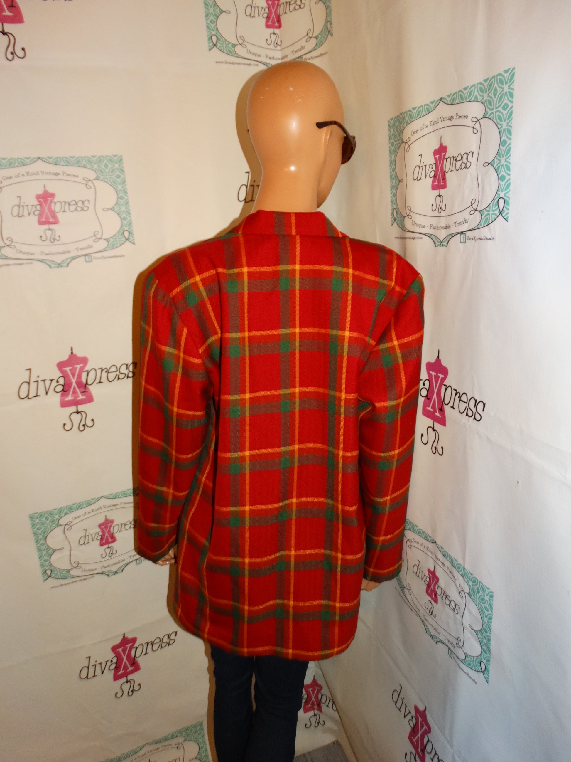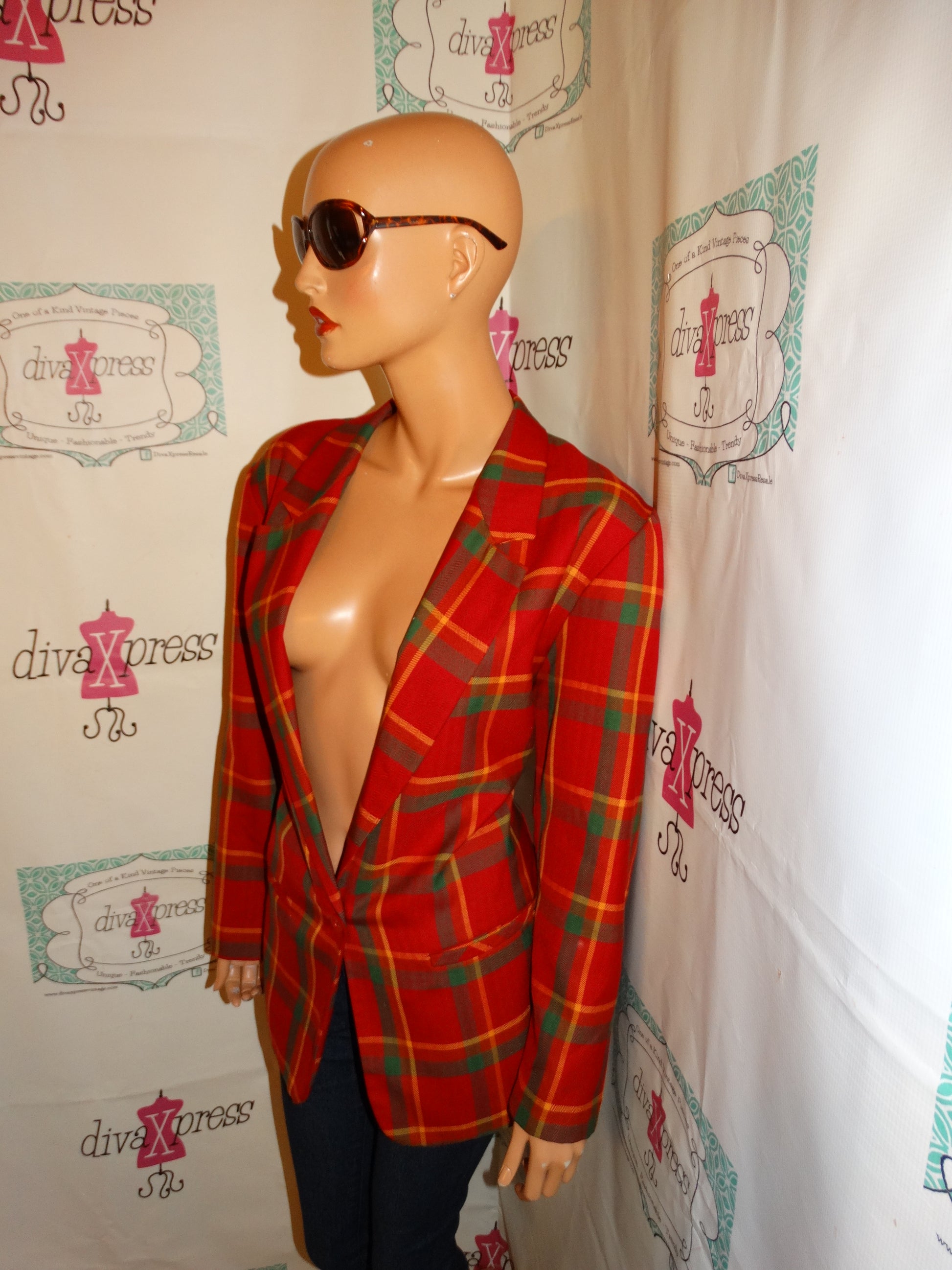 Vintage Lucia Pink Green Plaid Blazer Size L