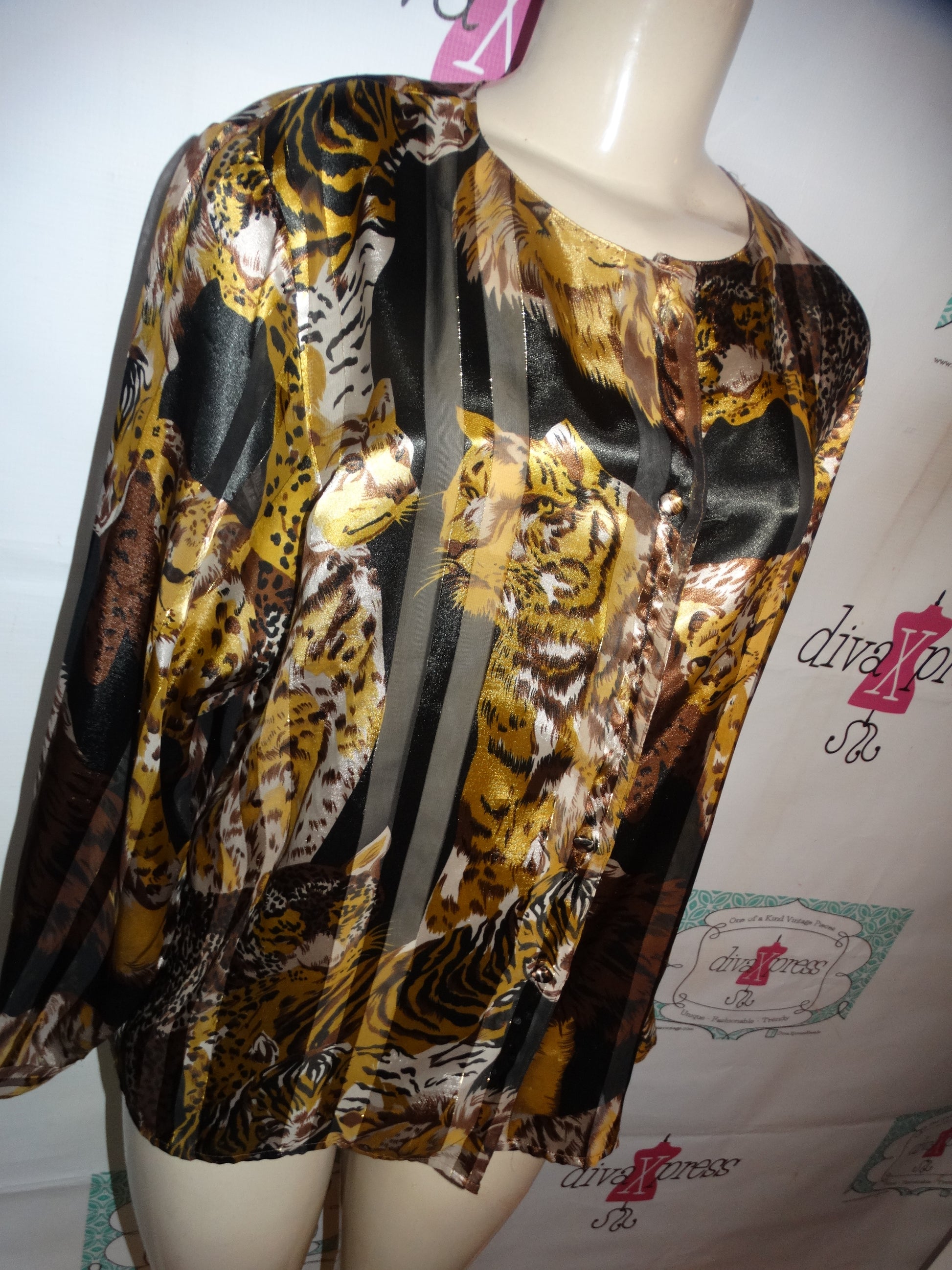 Up for sale is this lovely Vintage Martinique Sheer Leopard Blouse Size M
