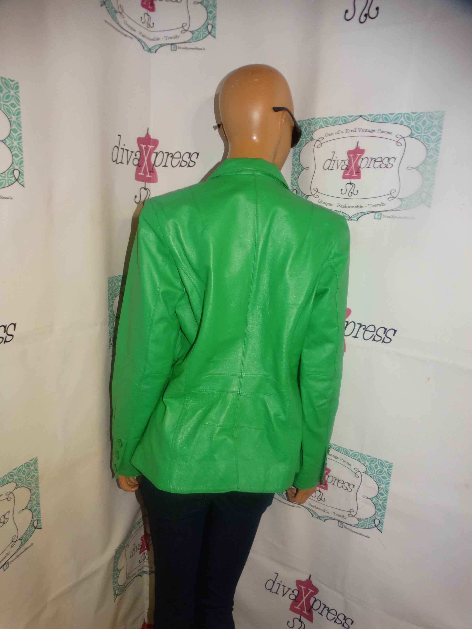 Vintage Metro Style Green Leather Jacket Size M
