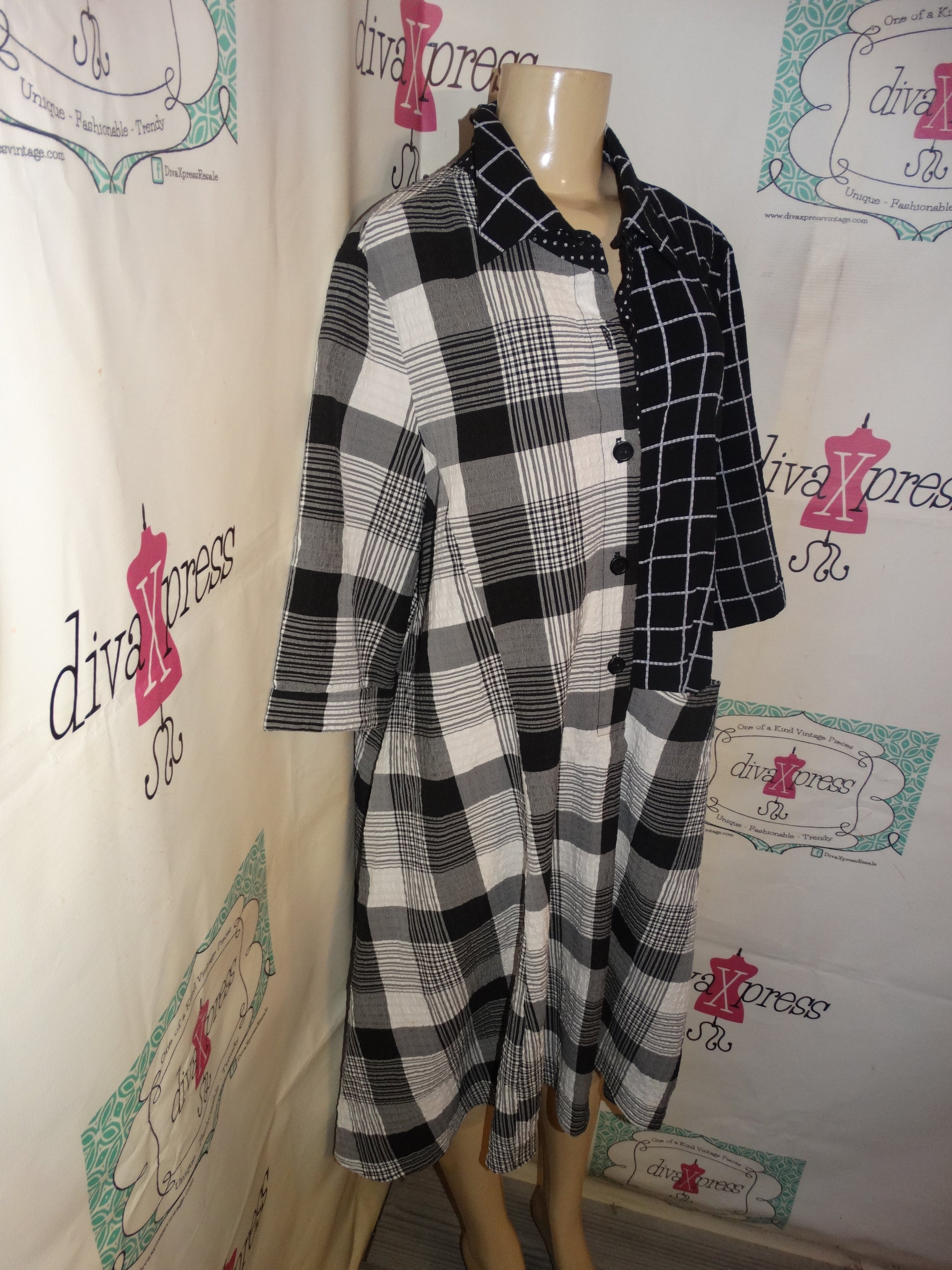 Up for sale is this lovely Vintage Moonlight Black/White Patch Dress Size 1x