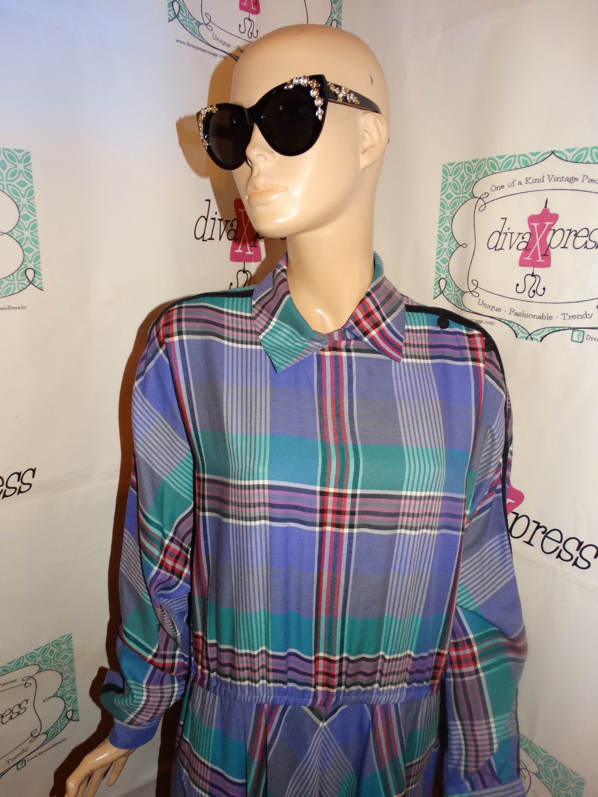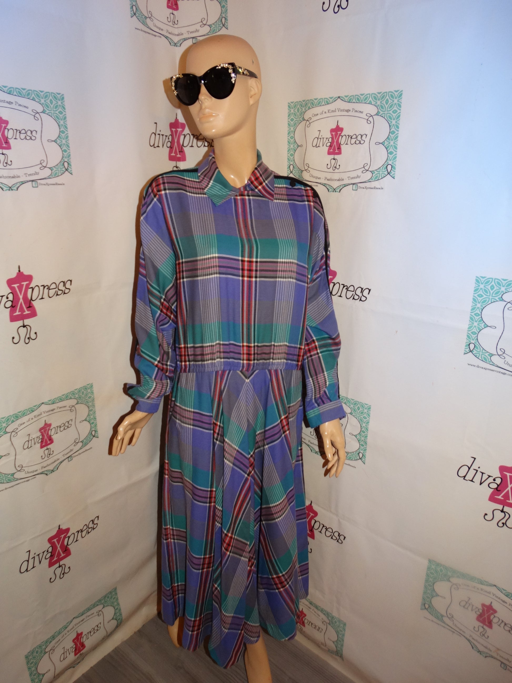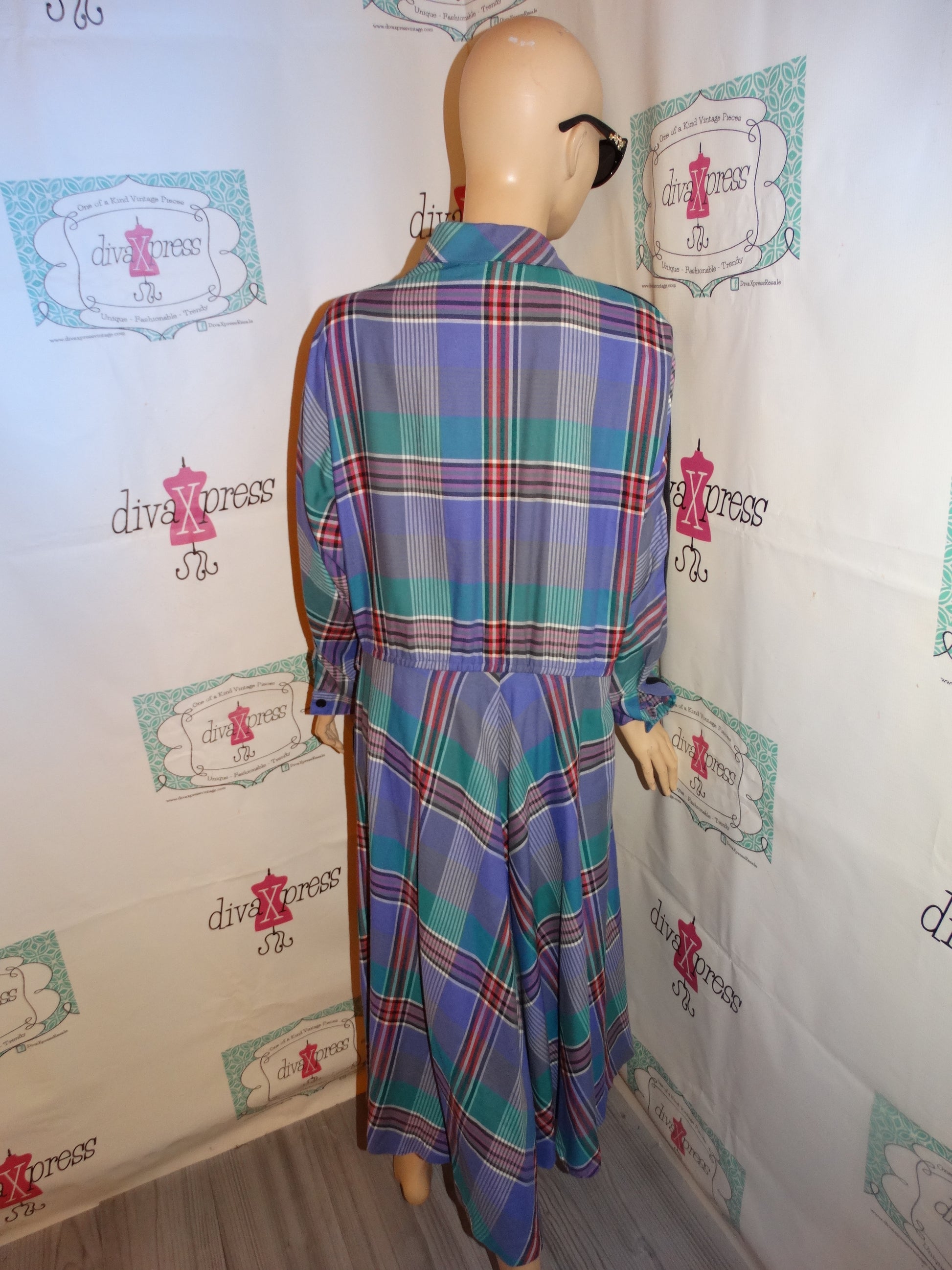 Vintage Ms Chaus Purple Plaid Dress Size XL