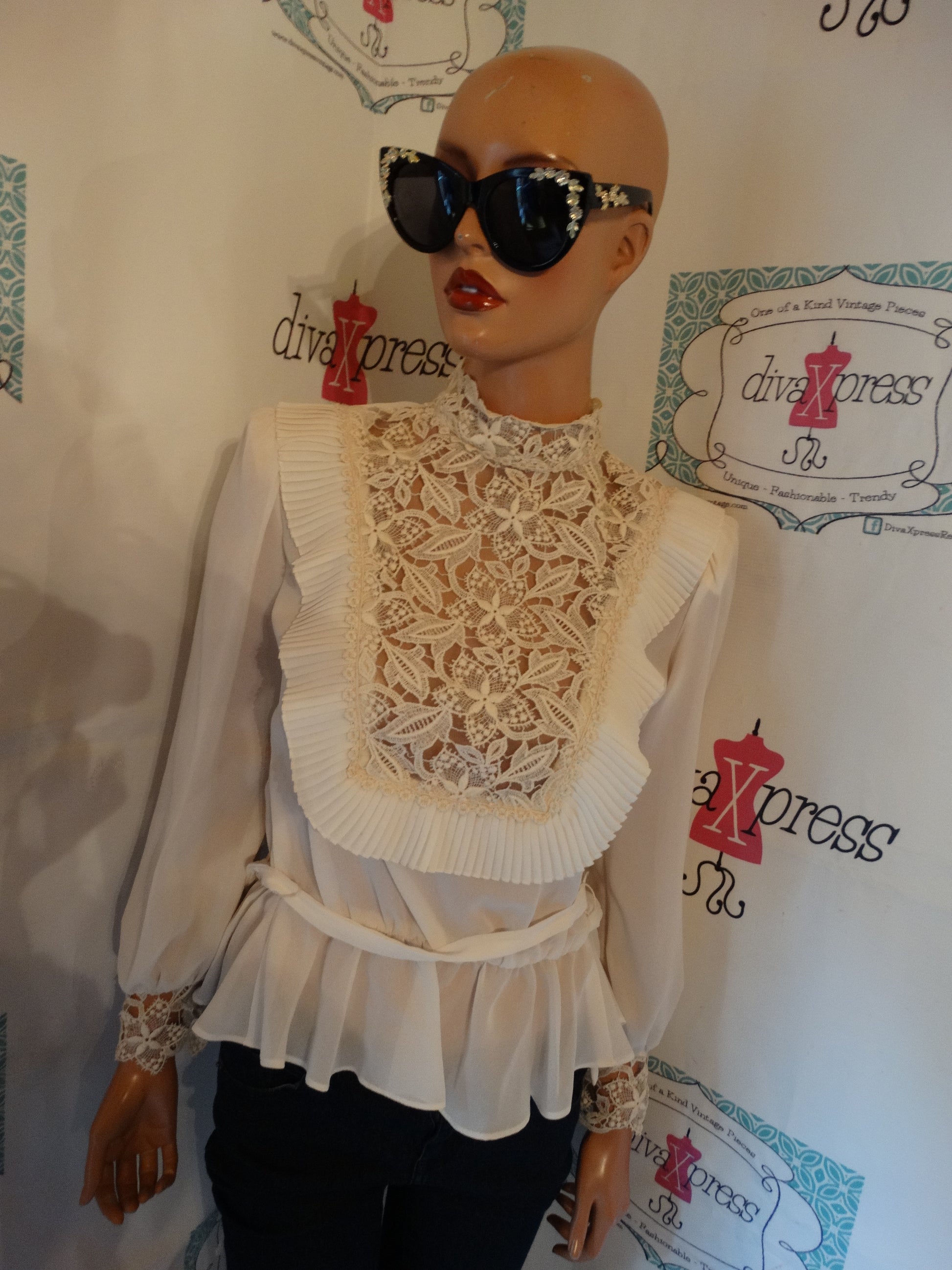 Up for sale is this lovely Vintage Natural Ingredients Cream Sheer Blouse S