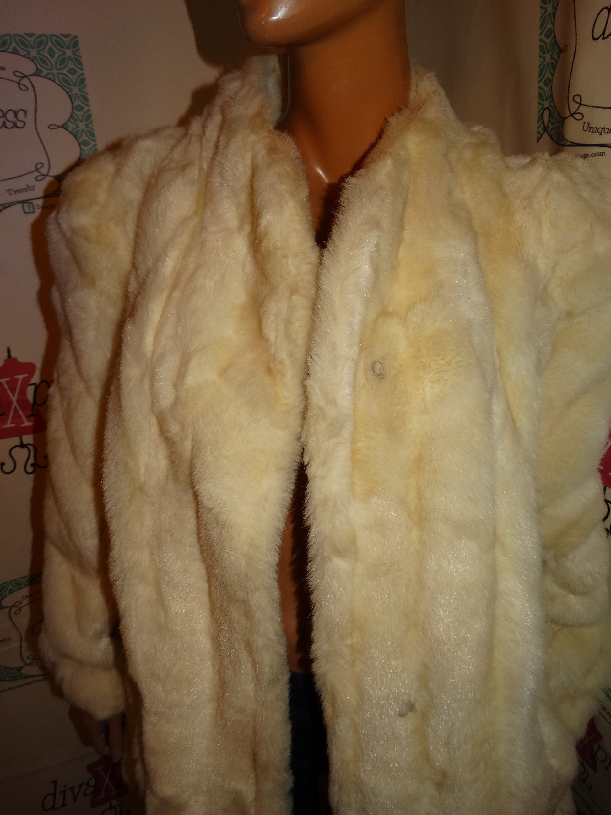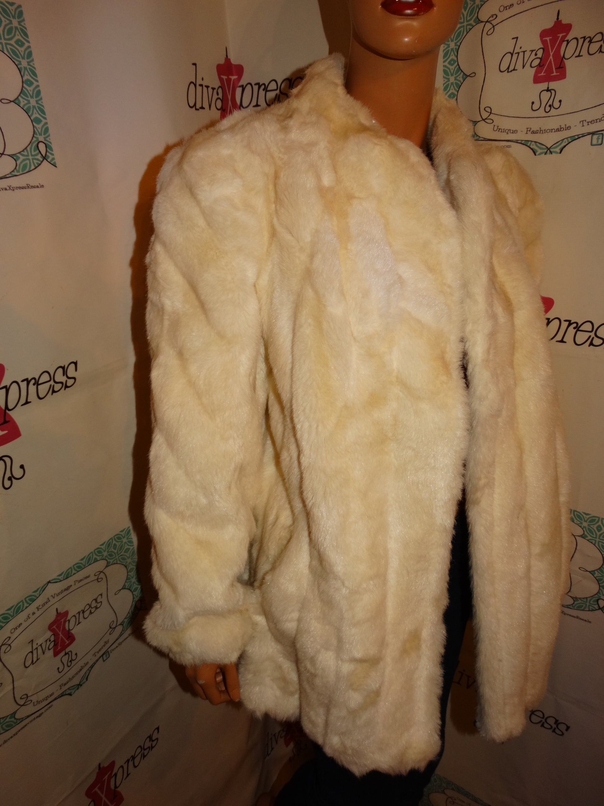 Up for sale is this lovely Vintage Olympia White Faux Fur coat Size L