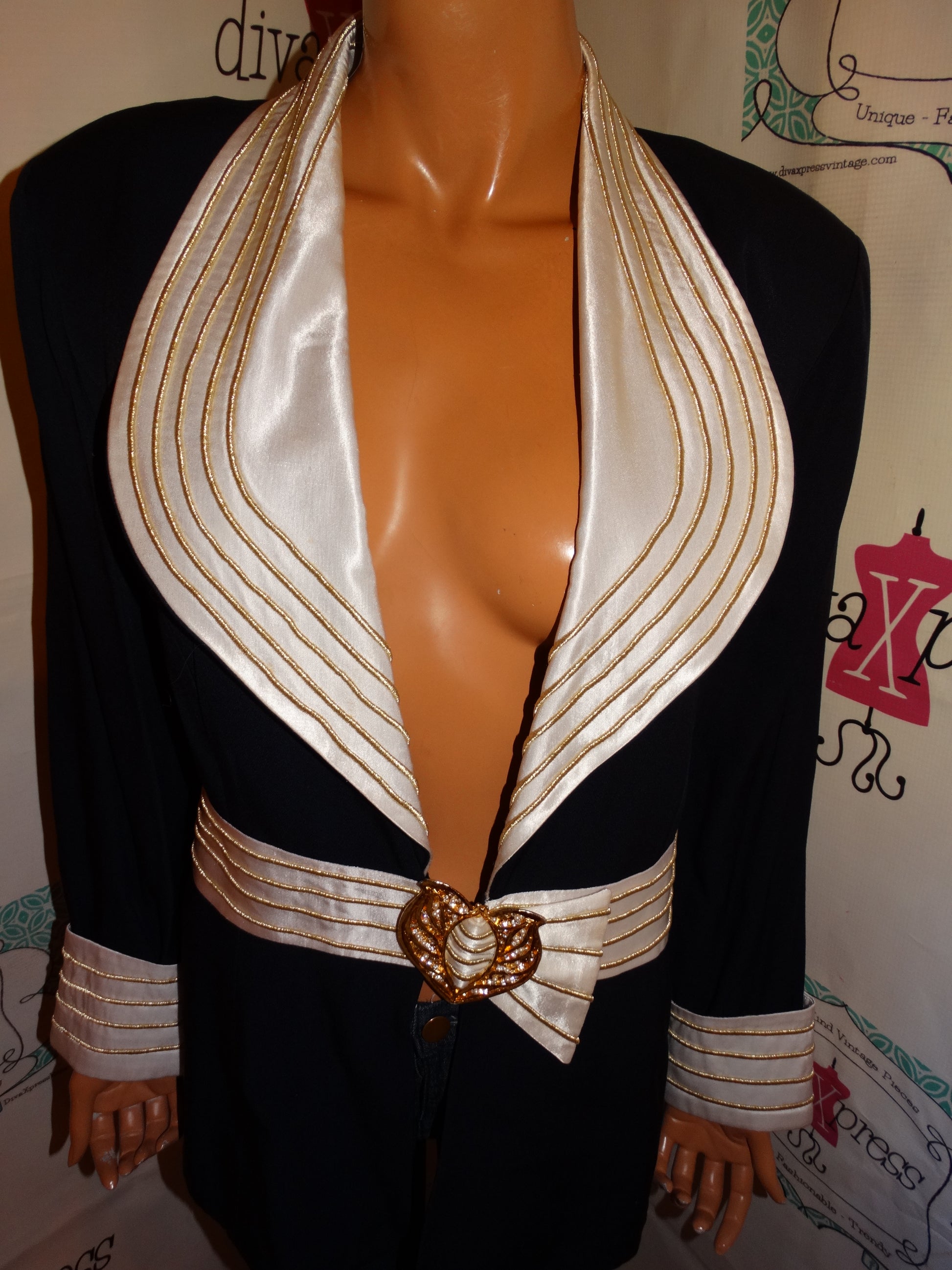 Up for sale is this lovely Vintage Only You Blue/Gold Blazer Size M