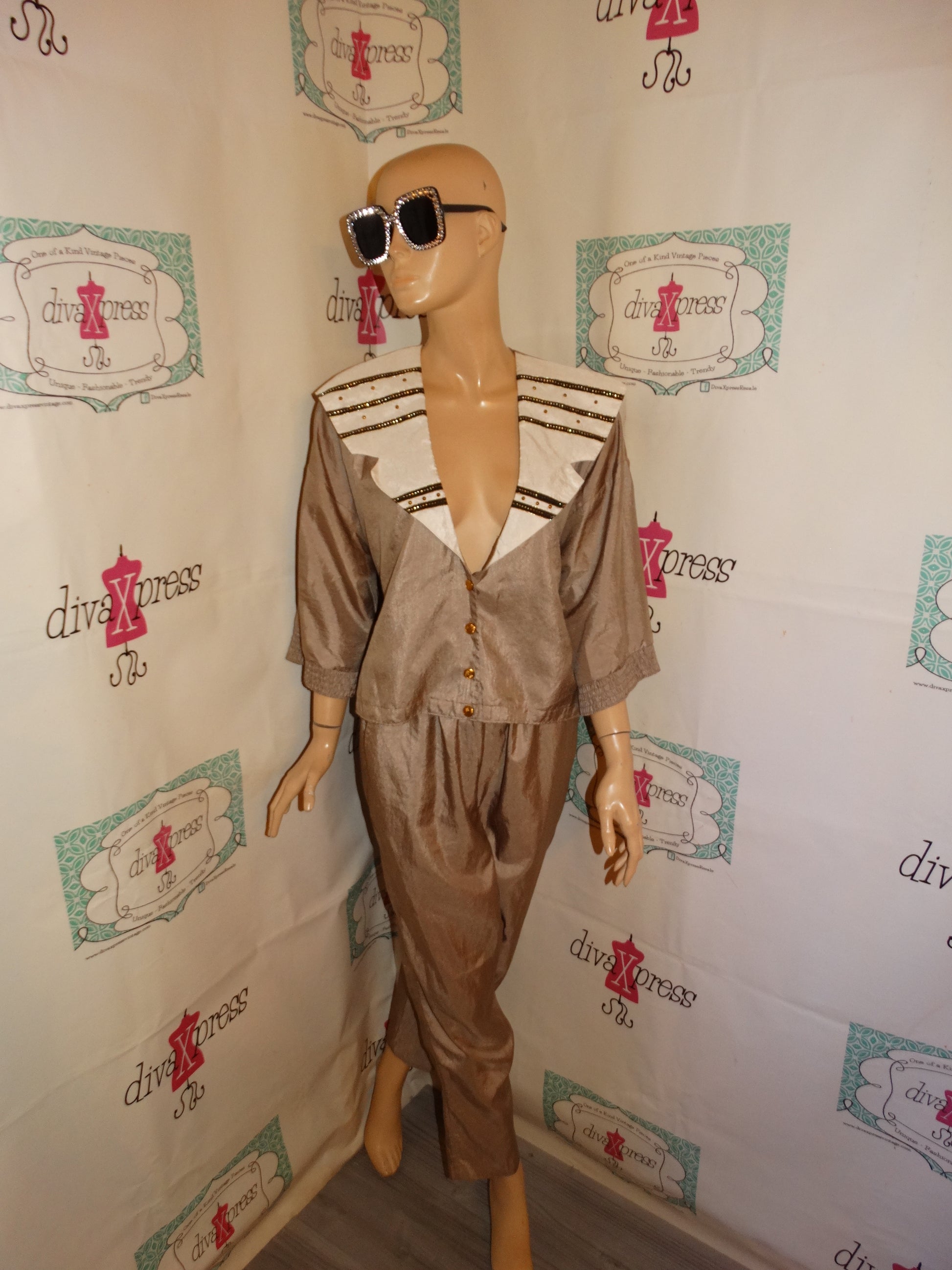 Vintage Park Place Tan/ Cream 2 Piece Pant Set Size L