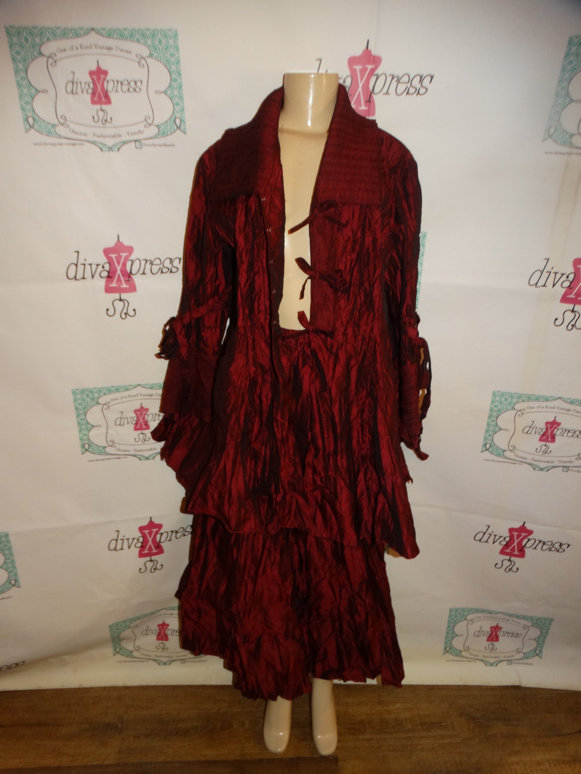 Vintage Peagus Burgundy 2 Piece Gaucho Pants Set Size 1x