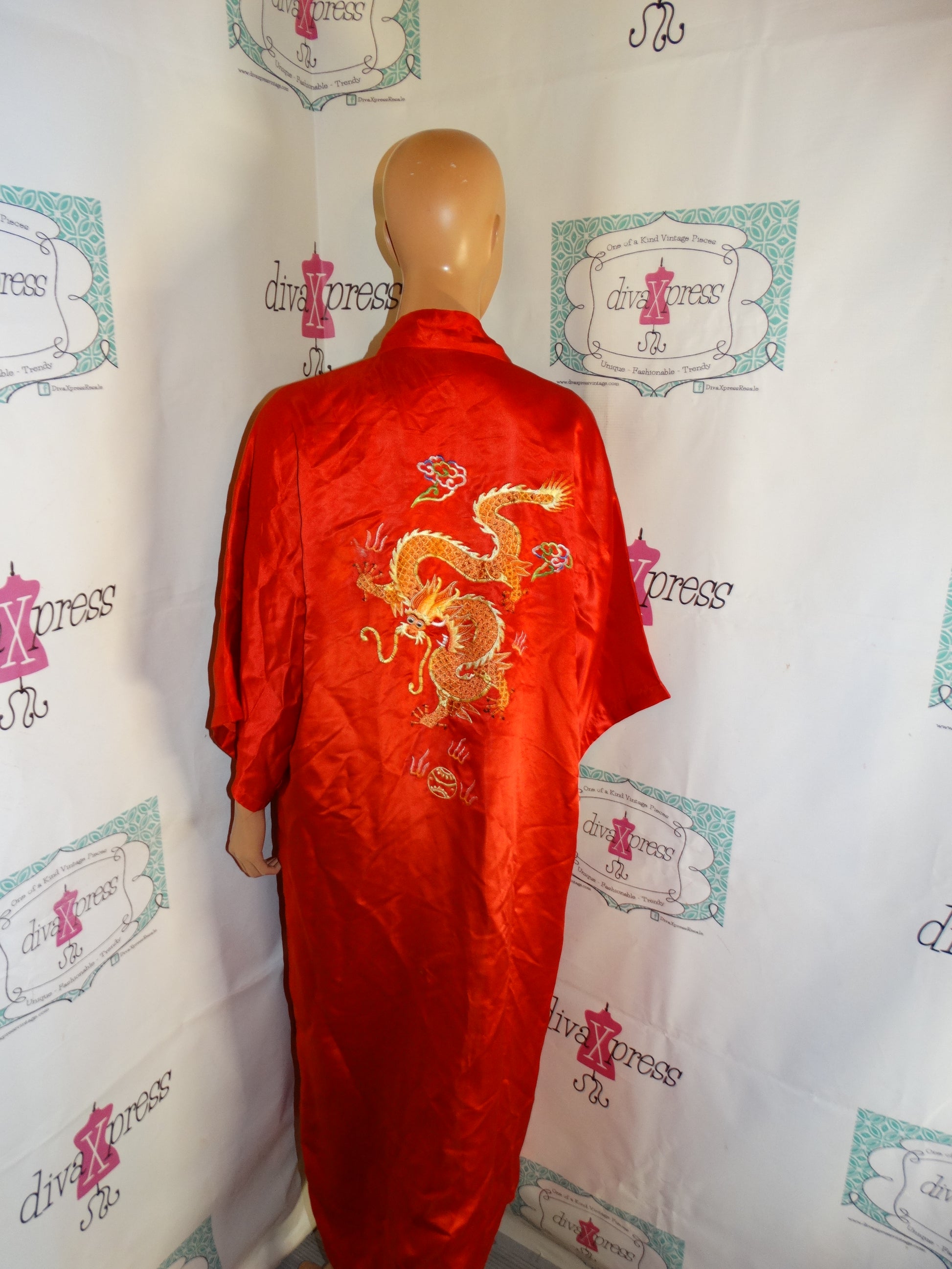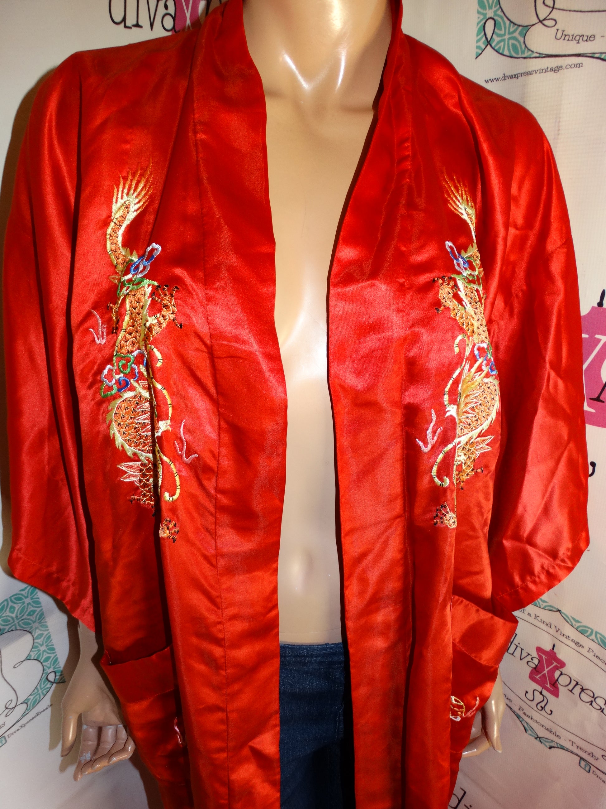 Up for sale is this lovely Vintage Pearls Red Dragon Silk Kimono Size 1x