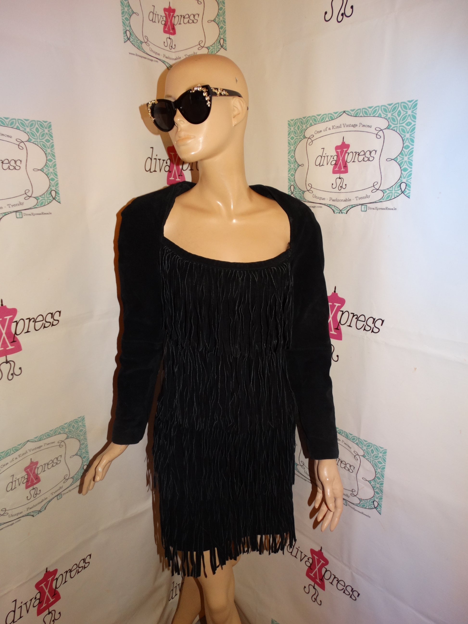 Vintage Phoenix Black Suede Shingle Dress Size S