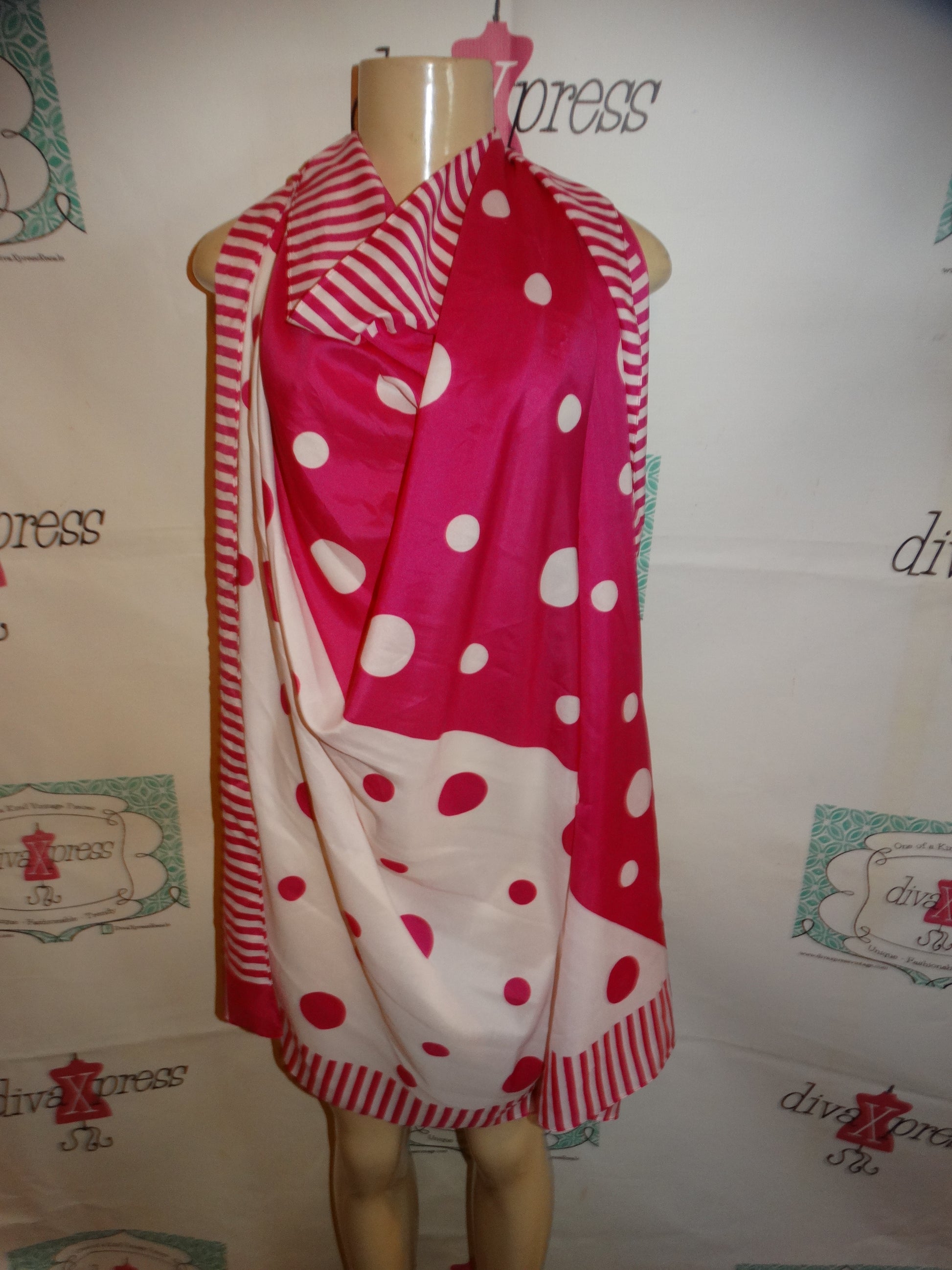 Up for sale is a lovely Vintage Pink/White Polka Dot Scarf