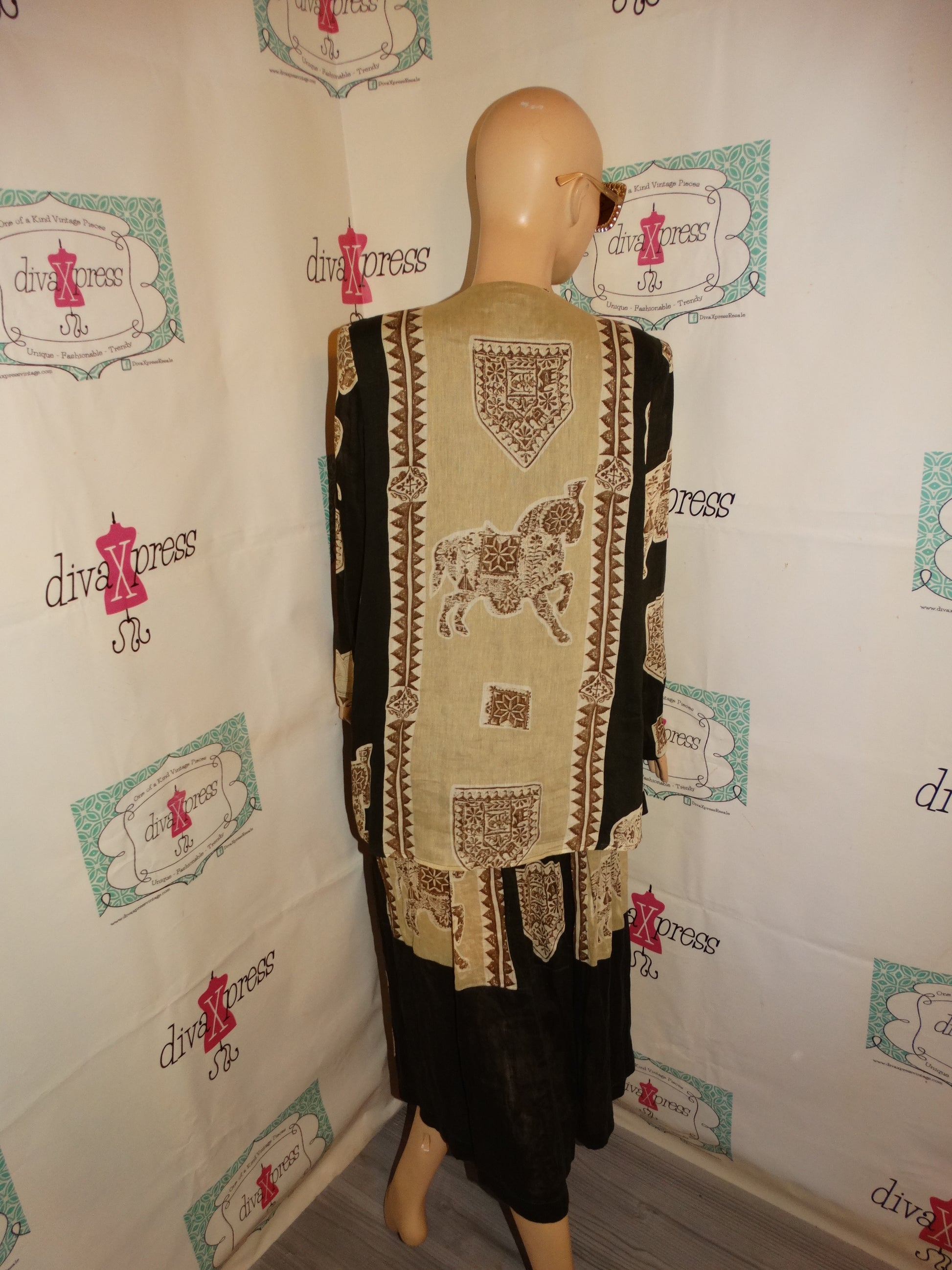 Vintage Platinum Olive Green/Cream 2 Piece Skirt Set Size L