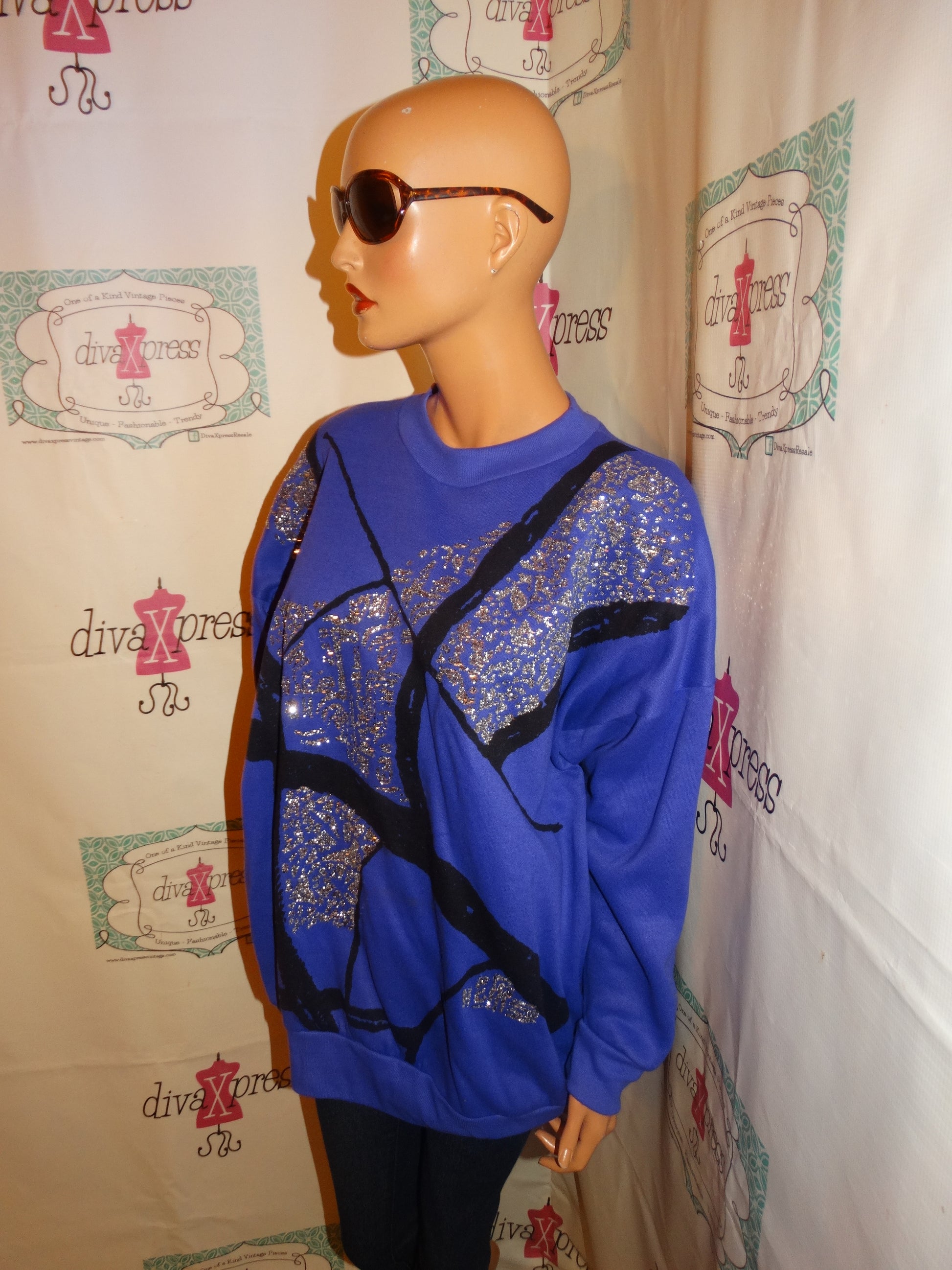 Vintage Purple/Silver Glitter Sweat Shirt Size 1x