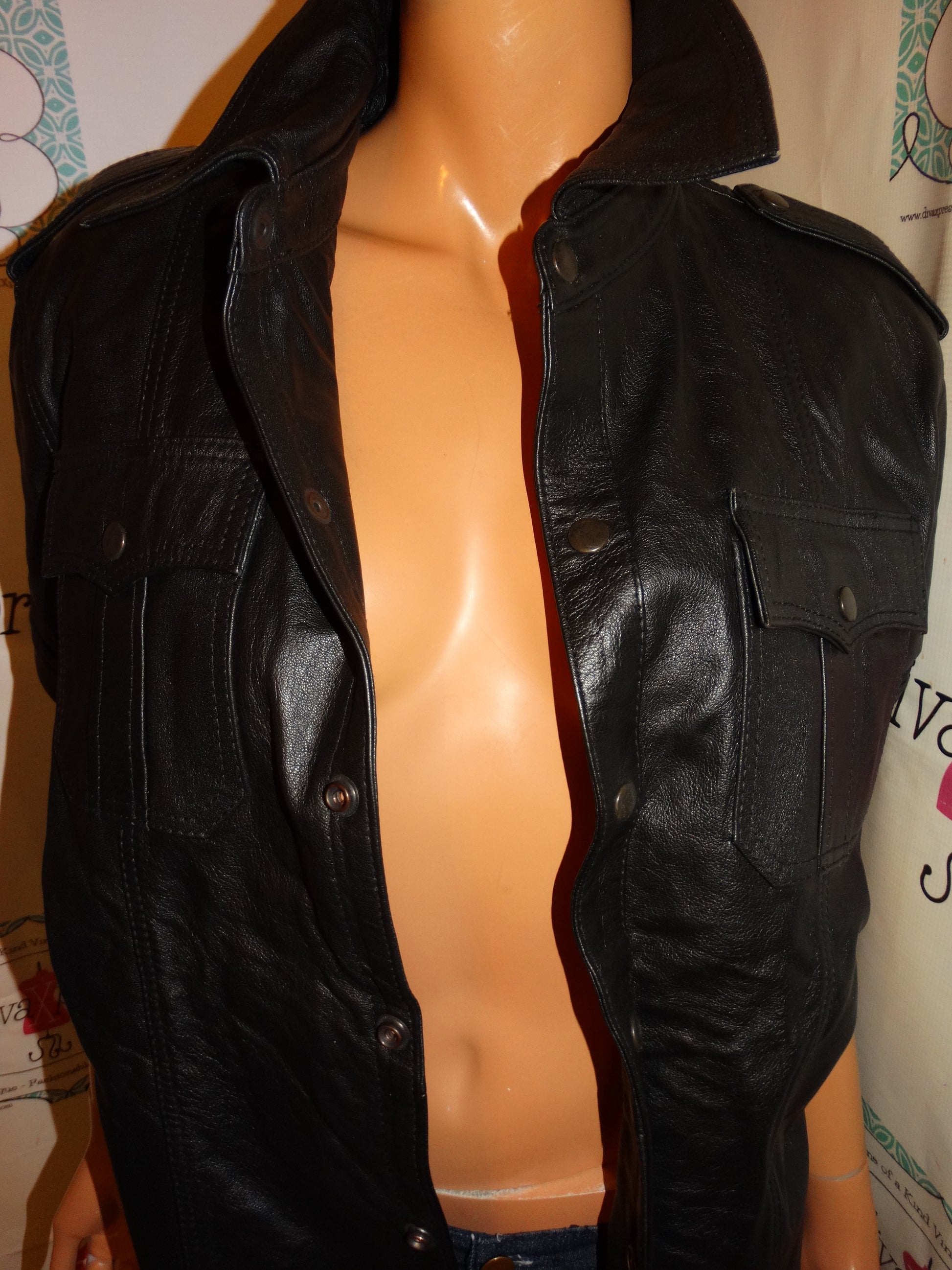 Vintage Quality Leather Good Black Leather Top Size M